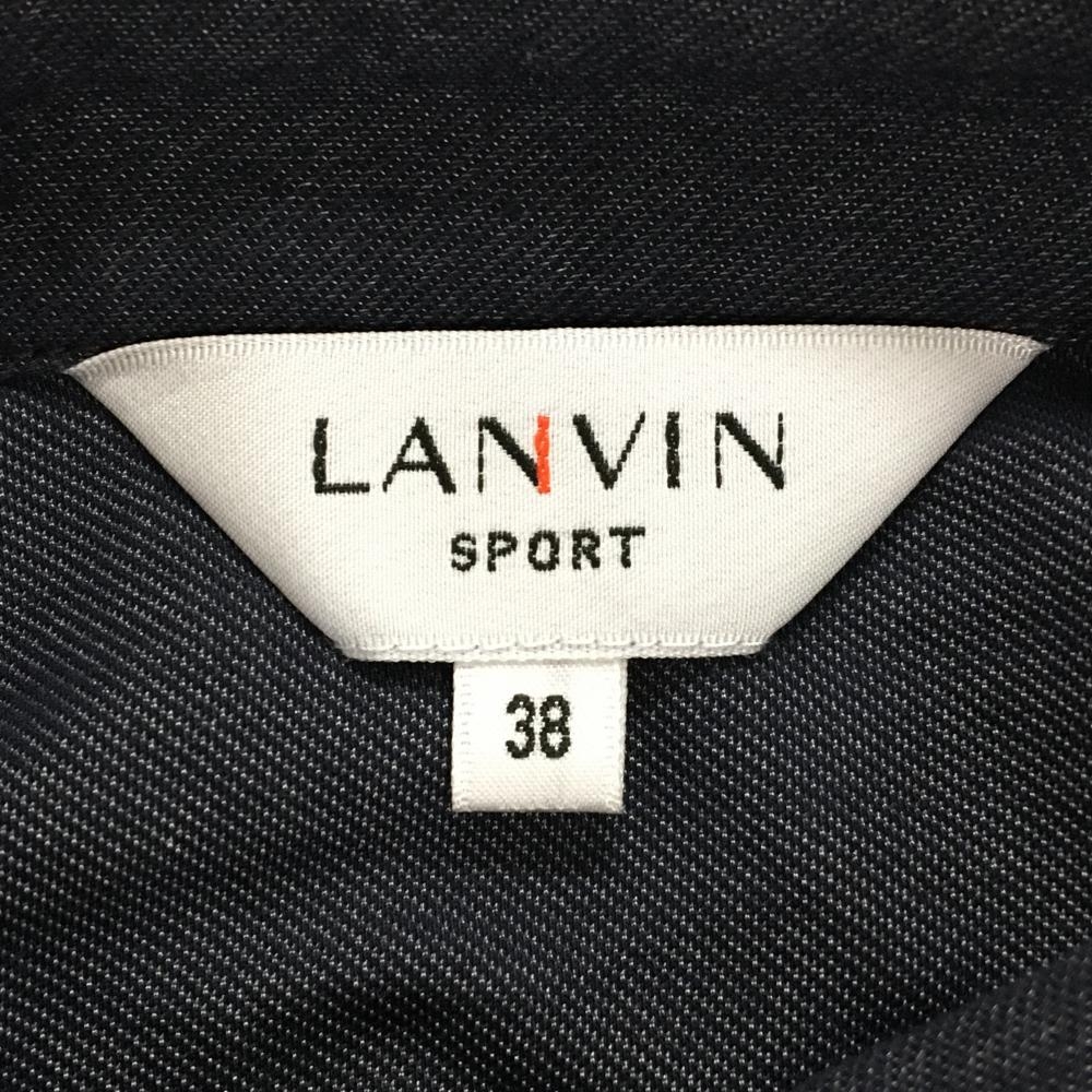 【美品】ランバンスポール 半袖ポロシャツ ネイビー×黒 デニム調 袖口・裾ロゴ レディース 38(M) ゴルフウェア LANVIN SPORT