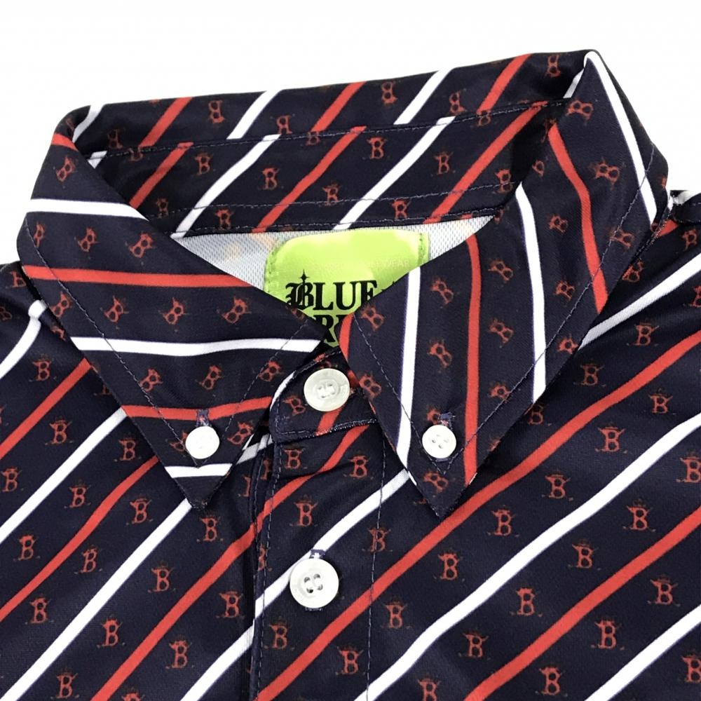 【超美品】ブルークラッシュ 半袖ポロシャツ ネイビー×レッド 斜めストライプ・ロゴ ボタンダウン メンズ M ゴルフウェア BLUE CRUSH