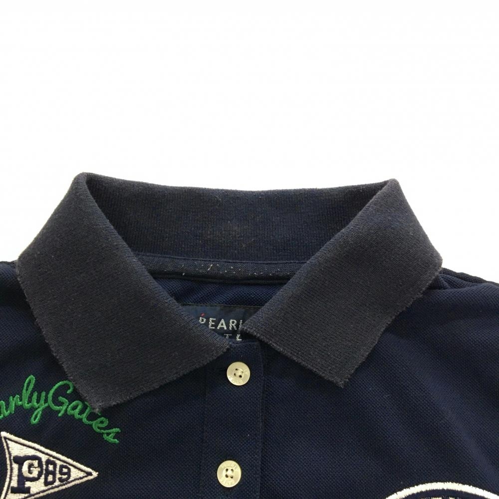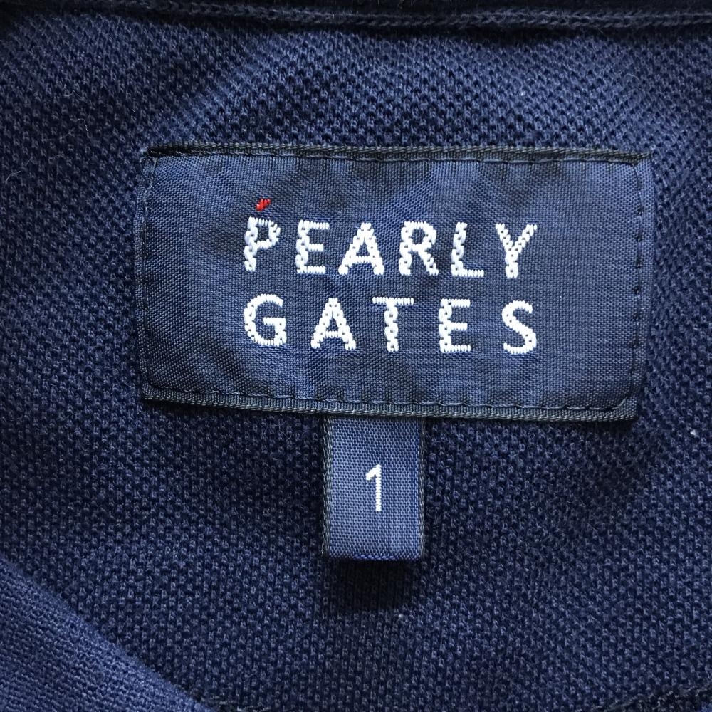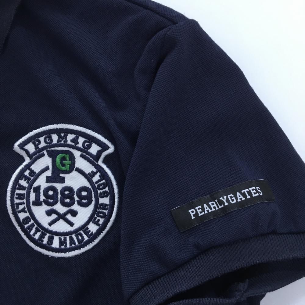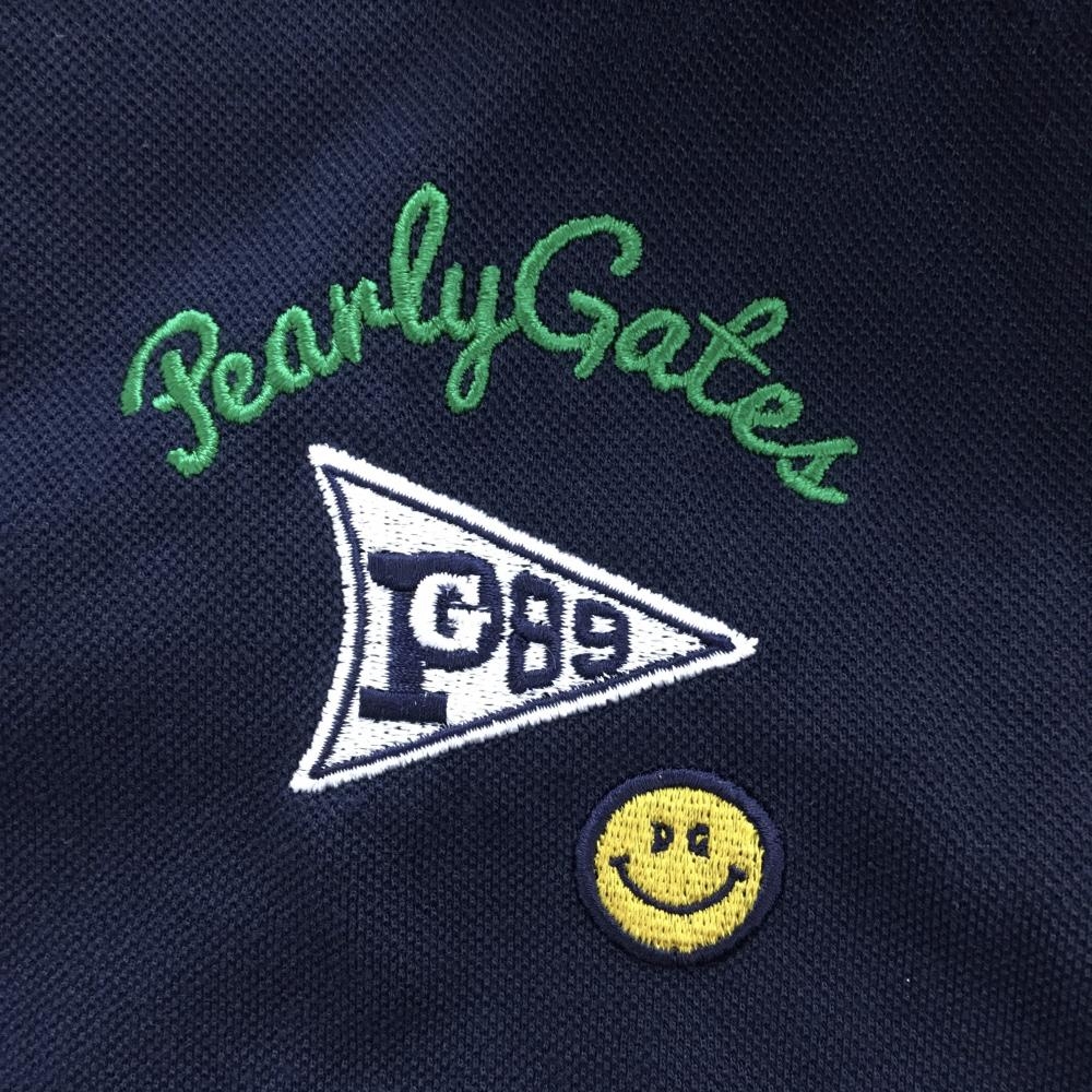パーリーゲイツ 半袖ポロシャツ ネイビー×白 ワッペン ニコちゃん スマイル レディース 1(M) ゴルフウェア PEARLY GATES