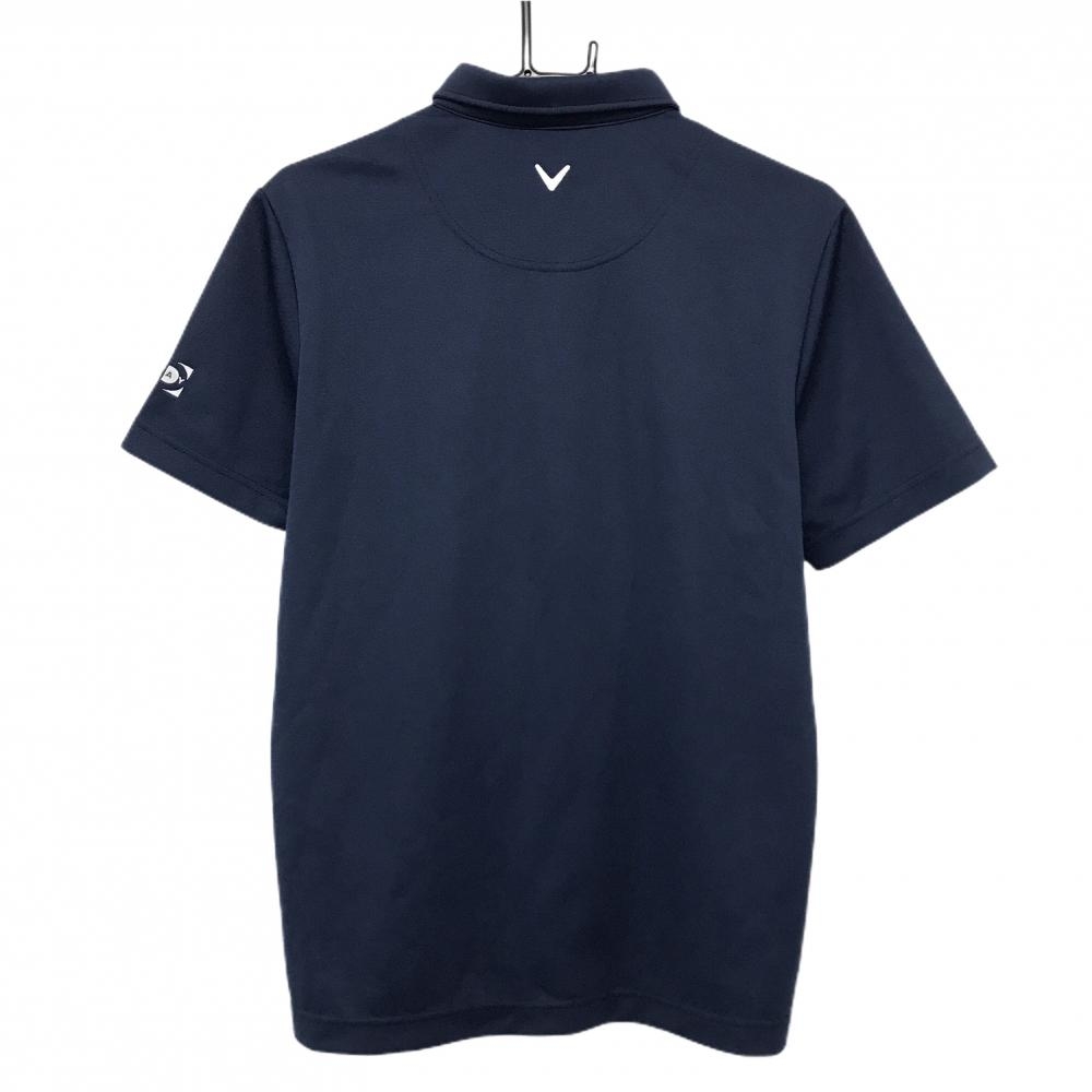 【超美品】キャロウェイ 半袖ポロシャツ ネイビー×白 ロゴ刺しゅう ボタンダウン メンズ L ゴルフウェア Callaway