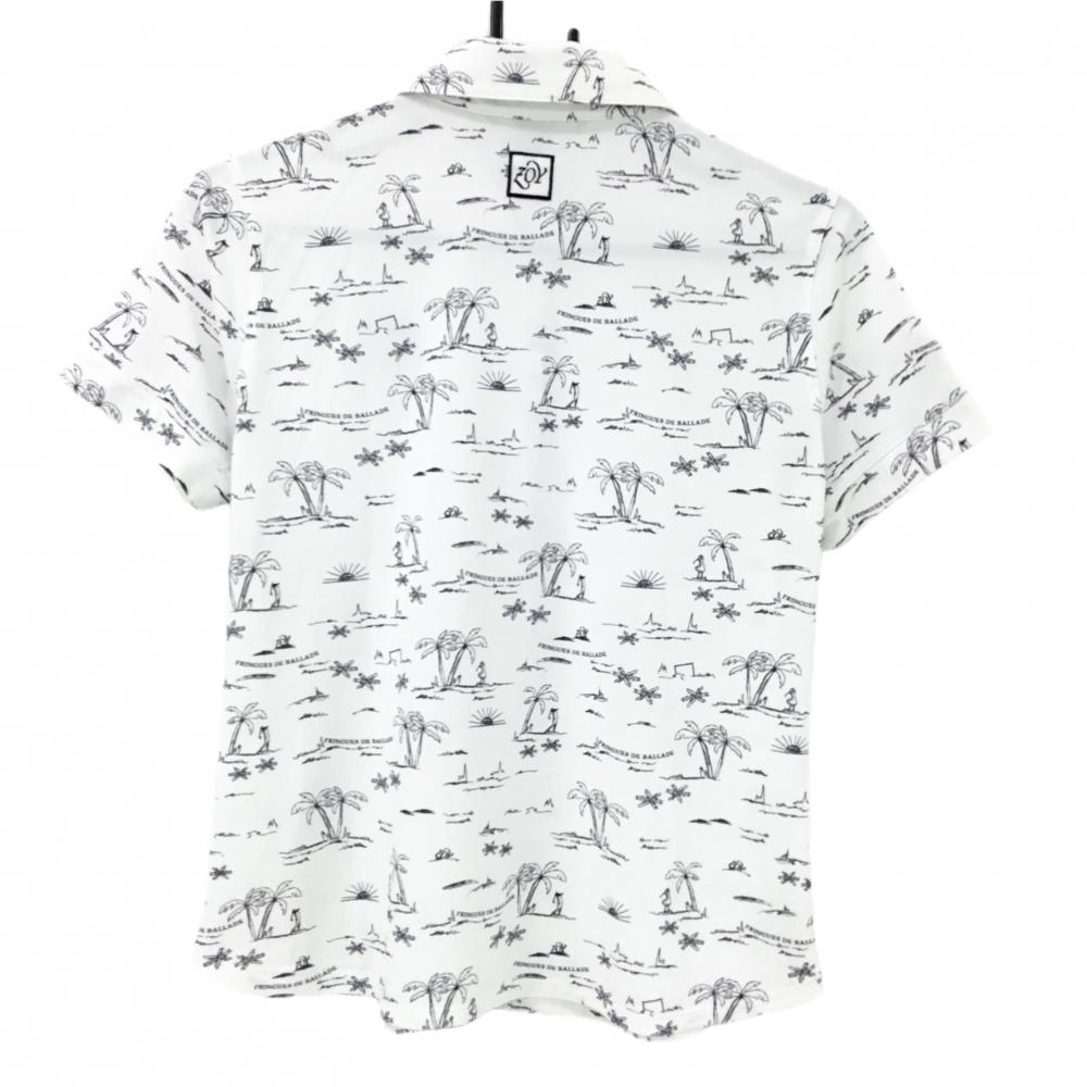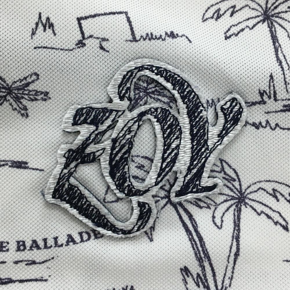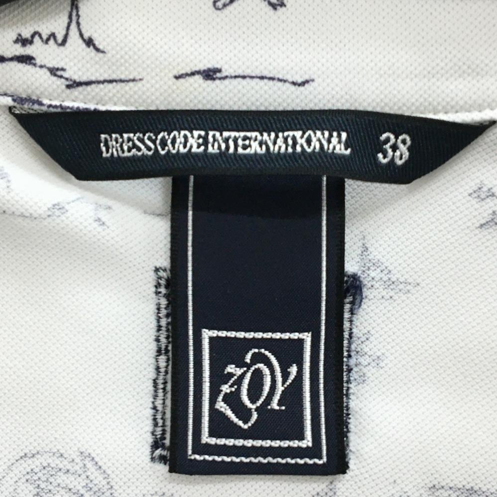 【超美品】ゾーイ 半袖ポロシャツ 白×ネイビー 総柄 ヤシの木 レディース 38(M) ゴルフウェア ZOY