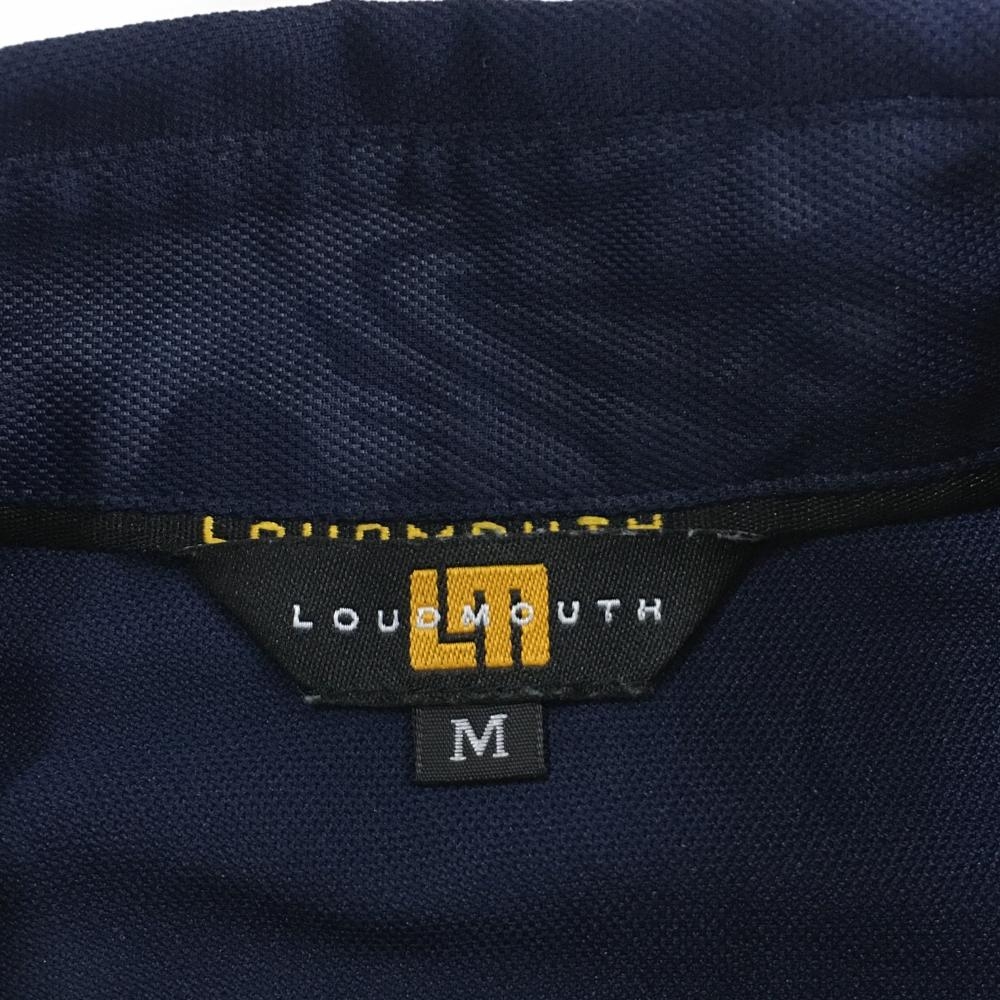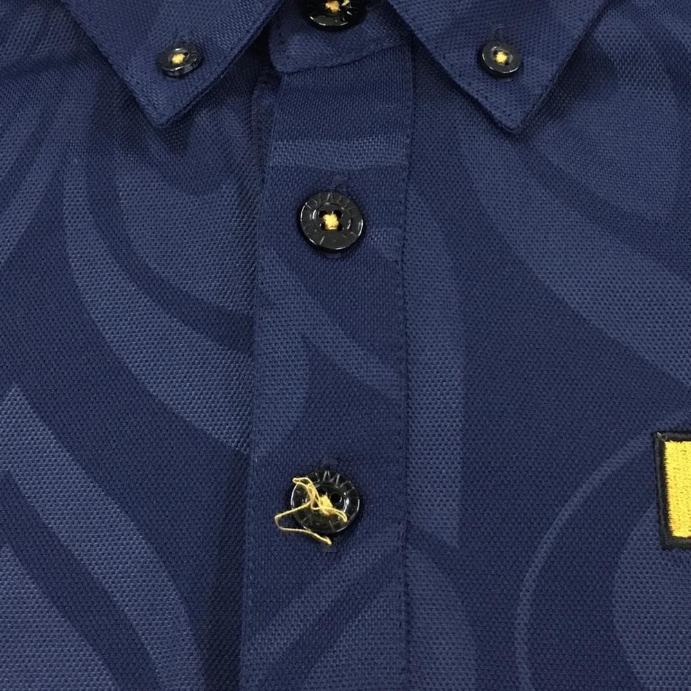 【美品】ラウドマウス 長袖ポロシャツ ネイビー×イエロー シャガデリック 地模様 ボタンダウン メンズ M ゴルフウェア LOUDMOUTH