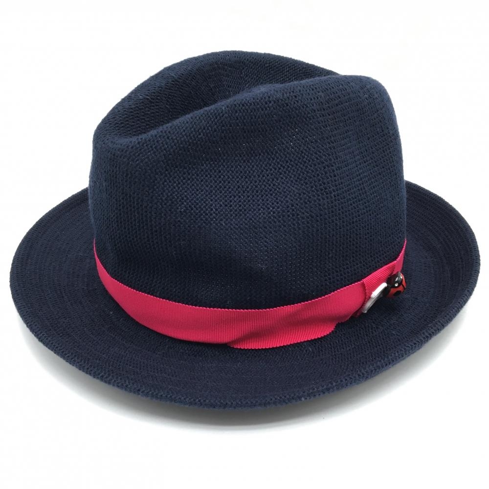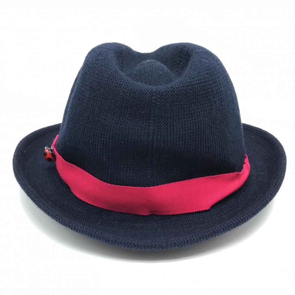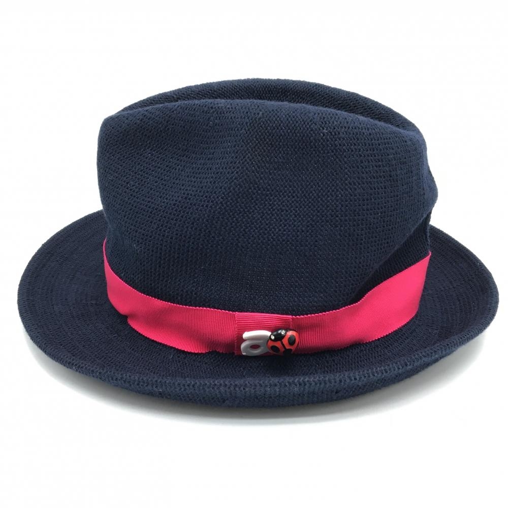 【美品】アルチビオ 中折れハット ネイビー リボンピンク てんとう虫チャーム付 レディース ゴルフウェア archivio