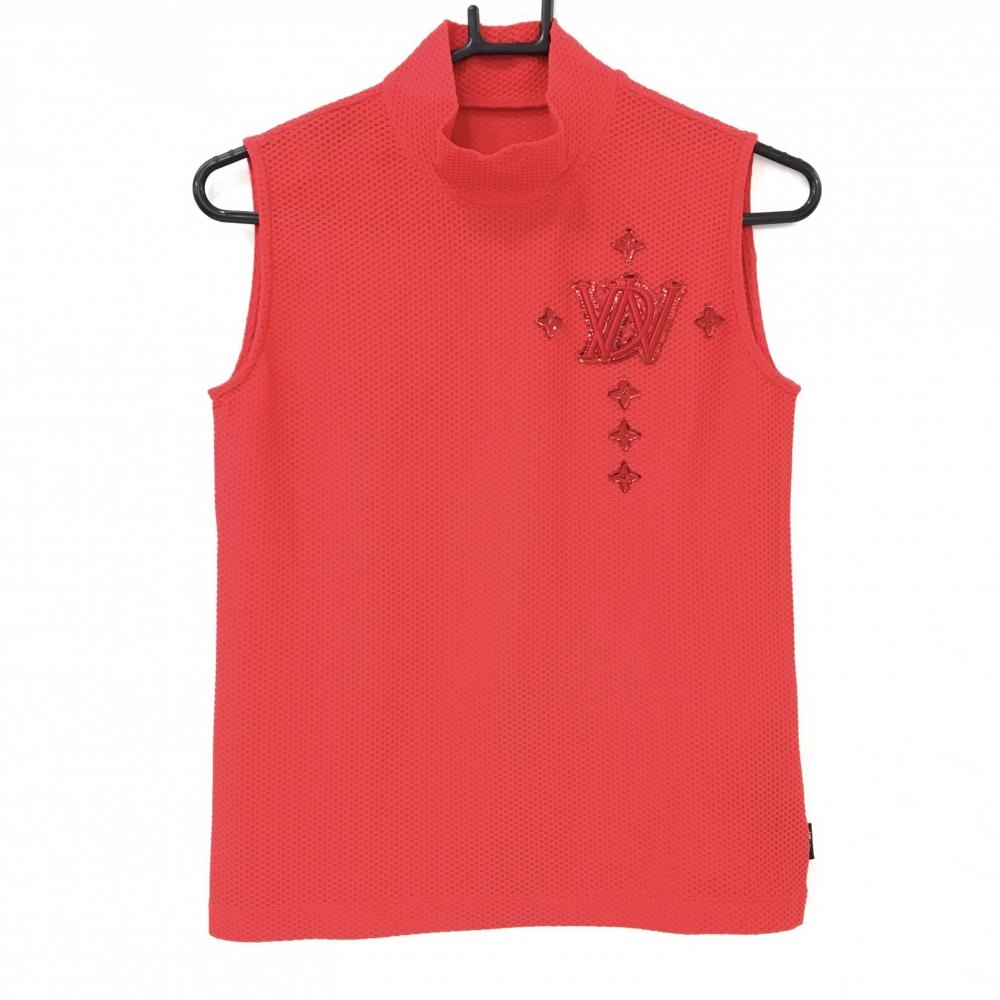 【超美品】ダンスウィズドラゴン ノースリーブハイネックシャツ レッド 凹凸生地 レディース 2(M) ゴルフウェア Dance With Dragon