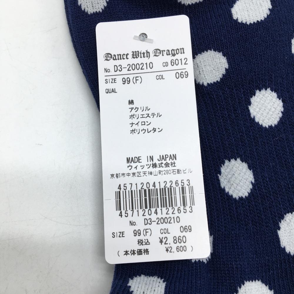 【新品】ダンスウィズドラゴン ソックス ネイビー×白 ドット ロゴ刺しゅう レディース 99(F) ゴルフウェア Dance With Dragon