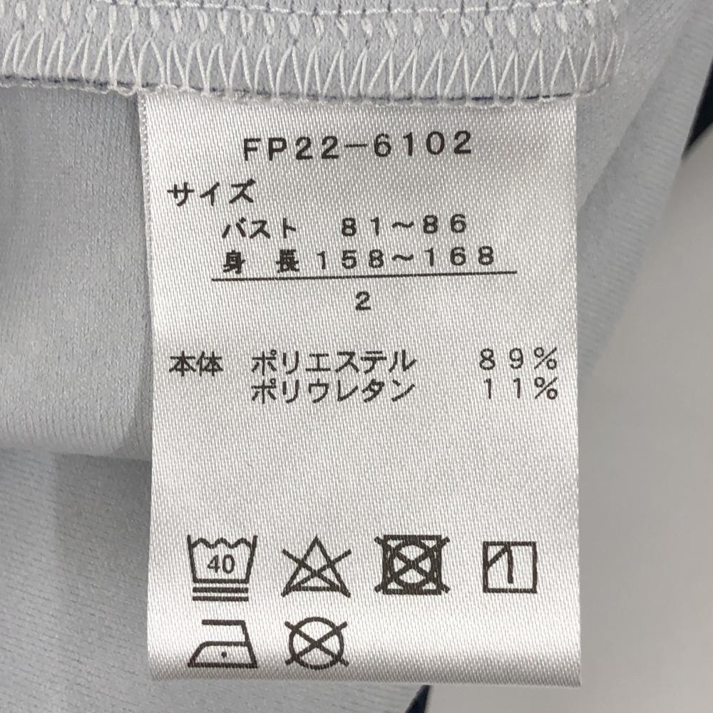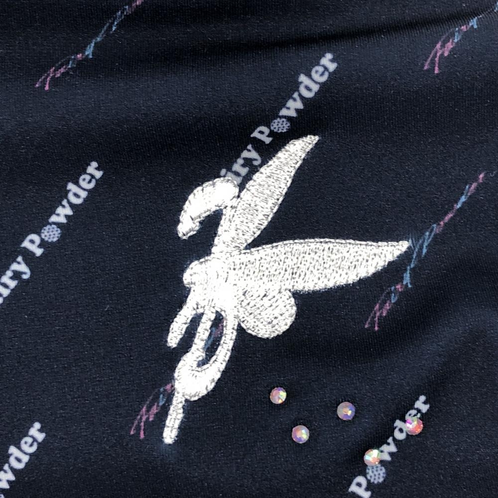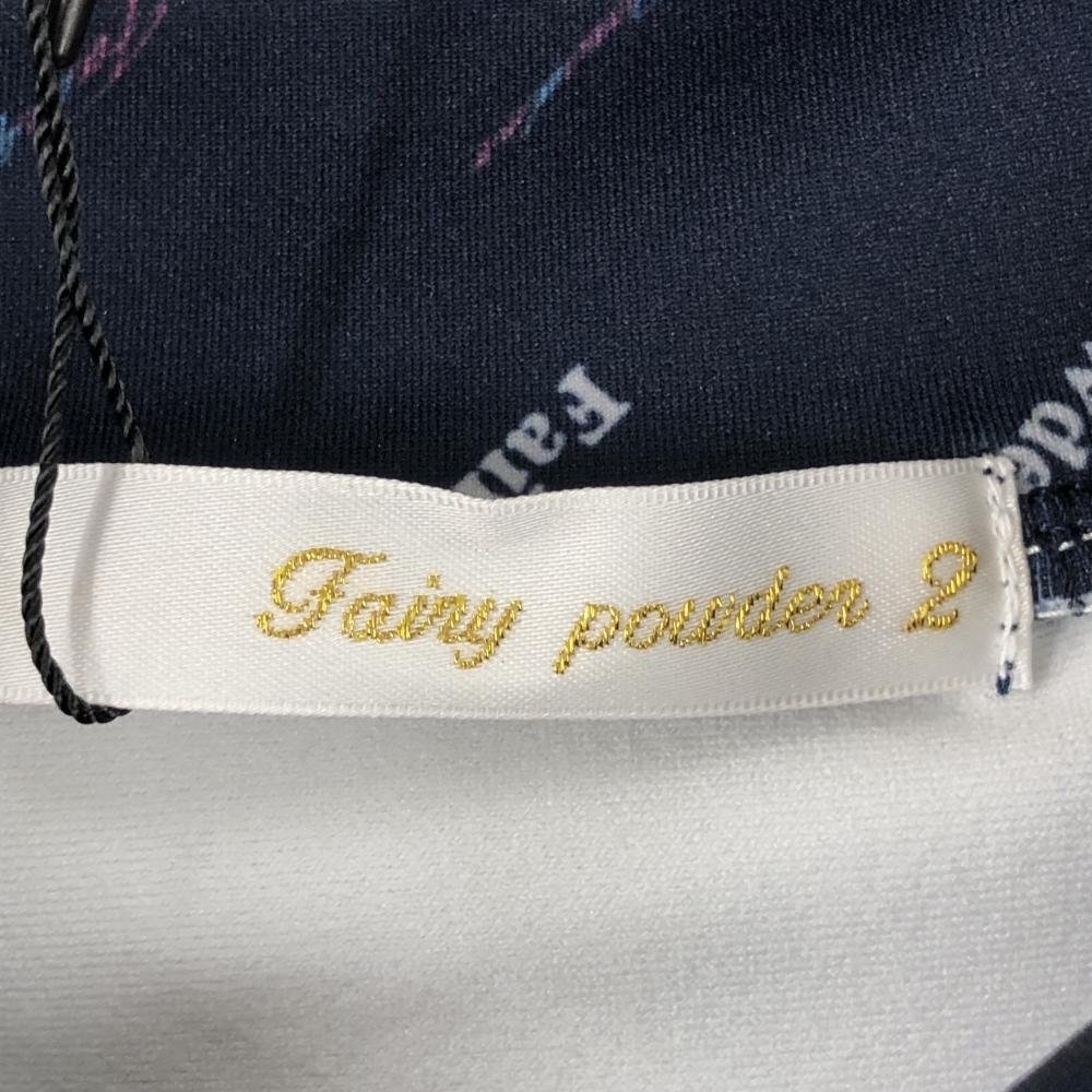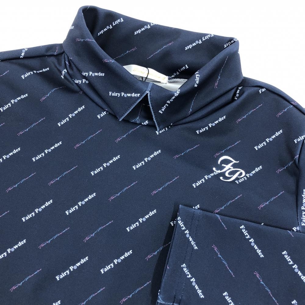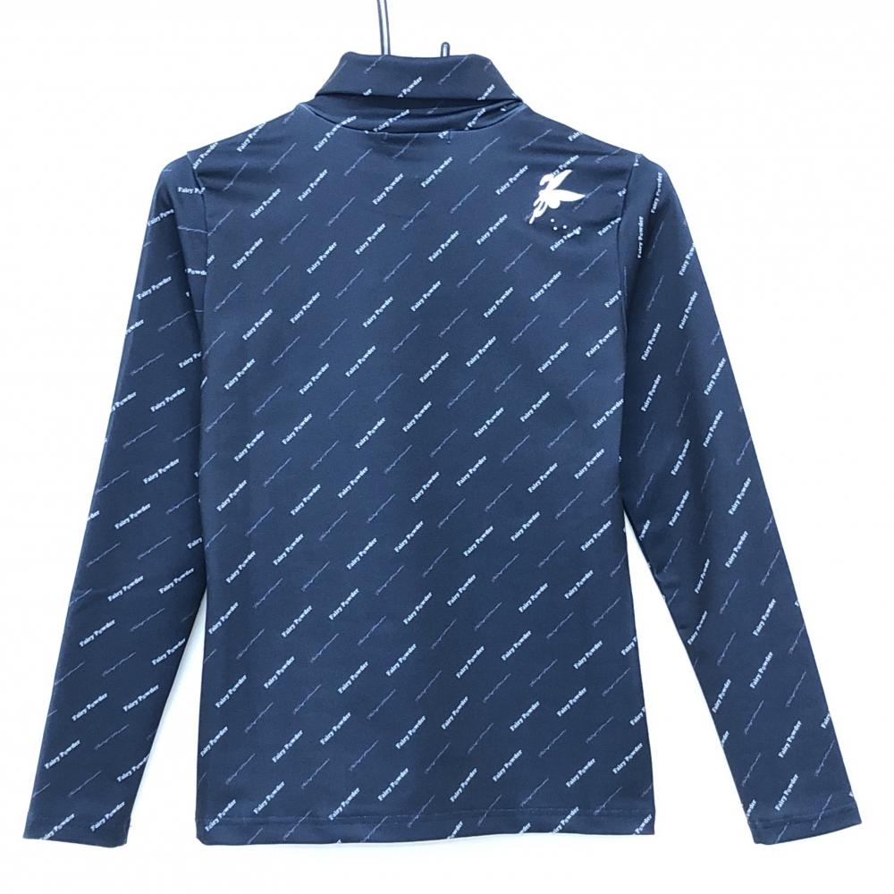 【新品】フェアリーパウダー 長袖ハイネックシャツ ネイビー×白 斜めロゴ総柄 ストレッチ レディース 2(M) ゴルフウェア FAIRY POWDER