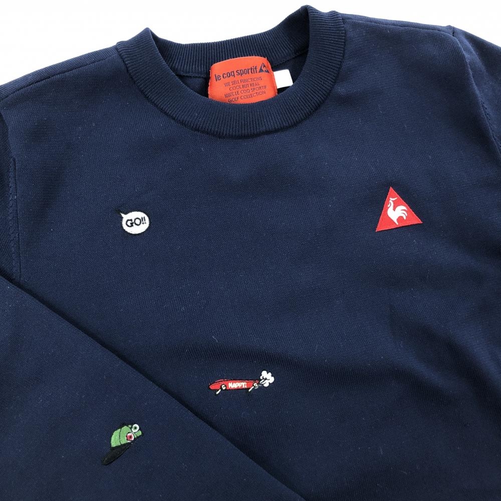 【超美品】ルコックゴルフ セーター ネイビー×マルチカラー 複数ワッペン ニット レディース M ゴルフウェア le coq sportif