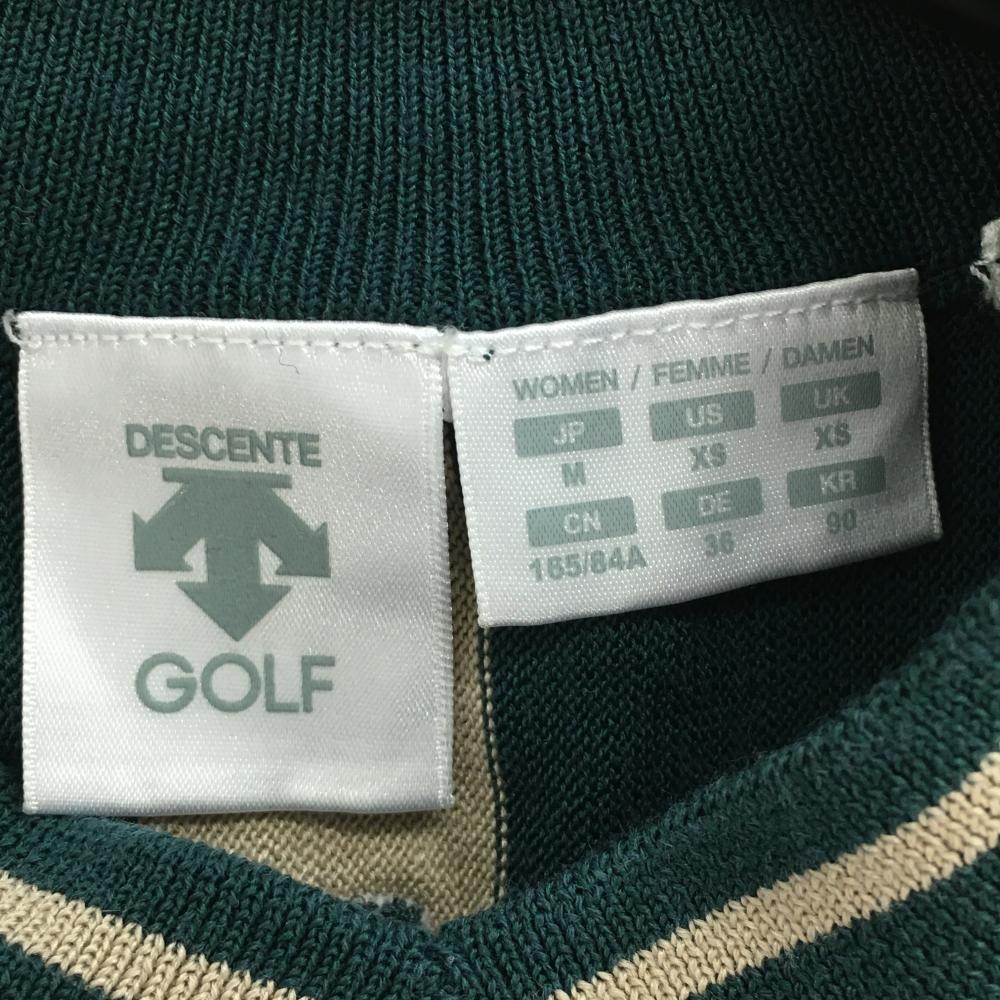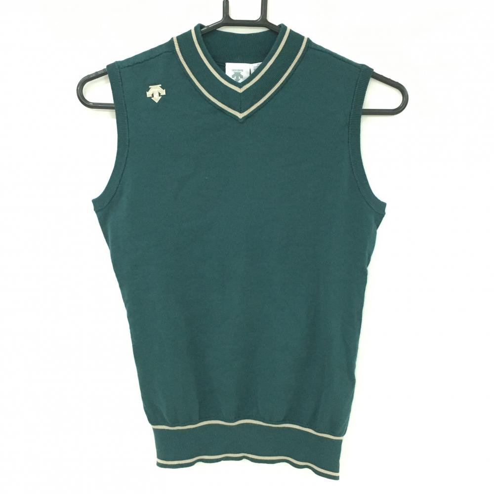 【美品】デサントゴルフ ニットベスト ダークグリーン×ベージュ 肩ロゴ 中田英寿 レディース M ゴルフウェア DESCENTE
