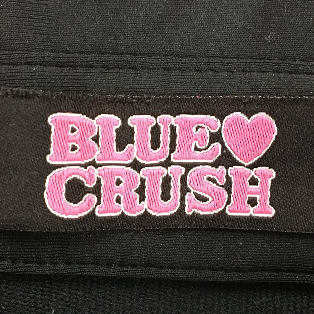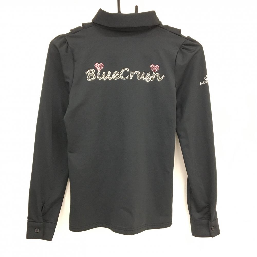 【美品】ブルークラッシュ 長袖ポロシャツ 黒 フリル 裏微起毛 背面ラインストーンロゴ レディース ゴルフウェア BLUE CRUSH