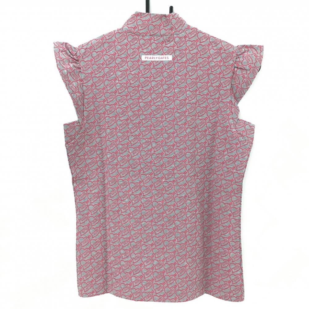 【新品】パーリーゲイツ ノースリーブポロシャツ グレー×ピンク ハートロゴ総柄 レディース 00(XS) ゴルフウェア PEARLY GATES