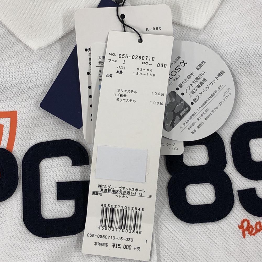 【新品】パーリーゲイツ ノースリーブポロシャツ 白×ネイビー フロントワッペン 吸水 防スケ レディース 1(M) ゴルフウェア PEARLY GATES