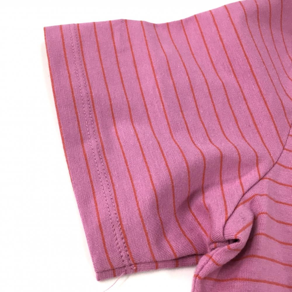 【美品】ナイキゴルフ 半袖スキッパーシャツ ピンク×レッド ボーダー 花刺しゅう レディース S(4-6) P CH P ゴルフウェア NIKE