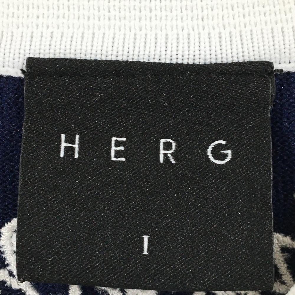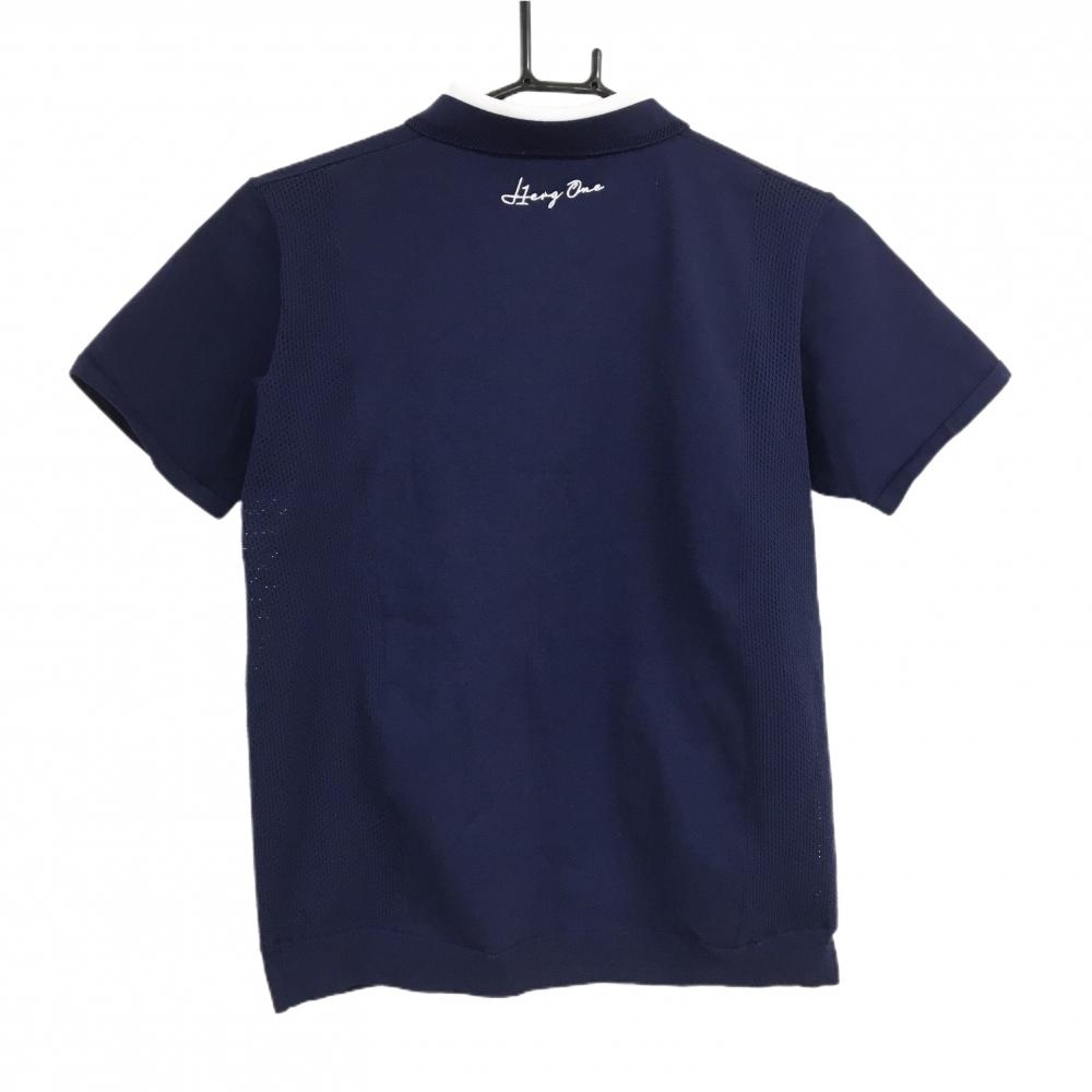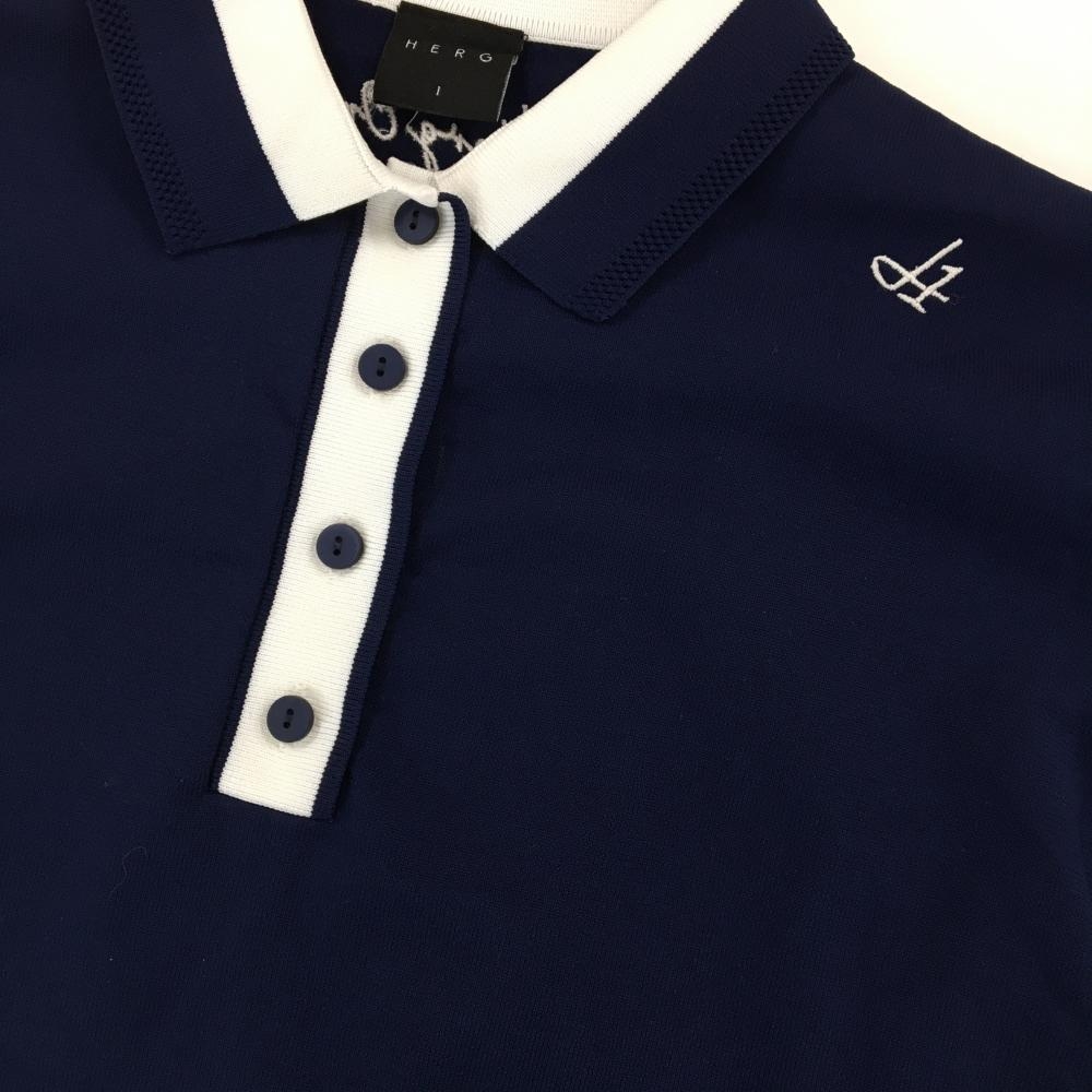 【超美品】エルグワン 半袖ニットポロシャツ ネイビー×白 サイドメッシュ レディース 1(M) ゴルフウェア HERG1
