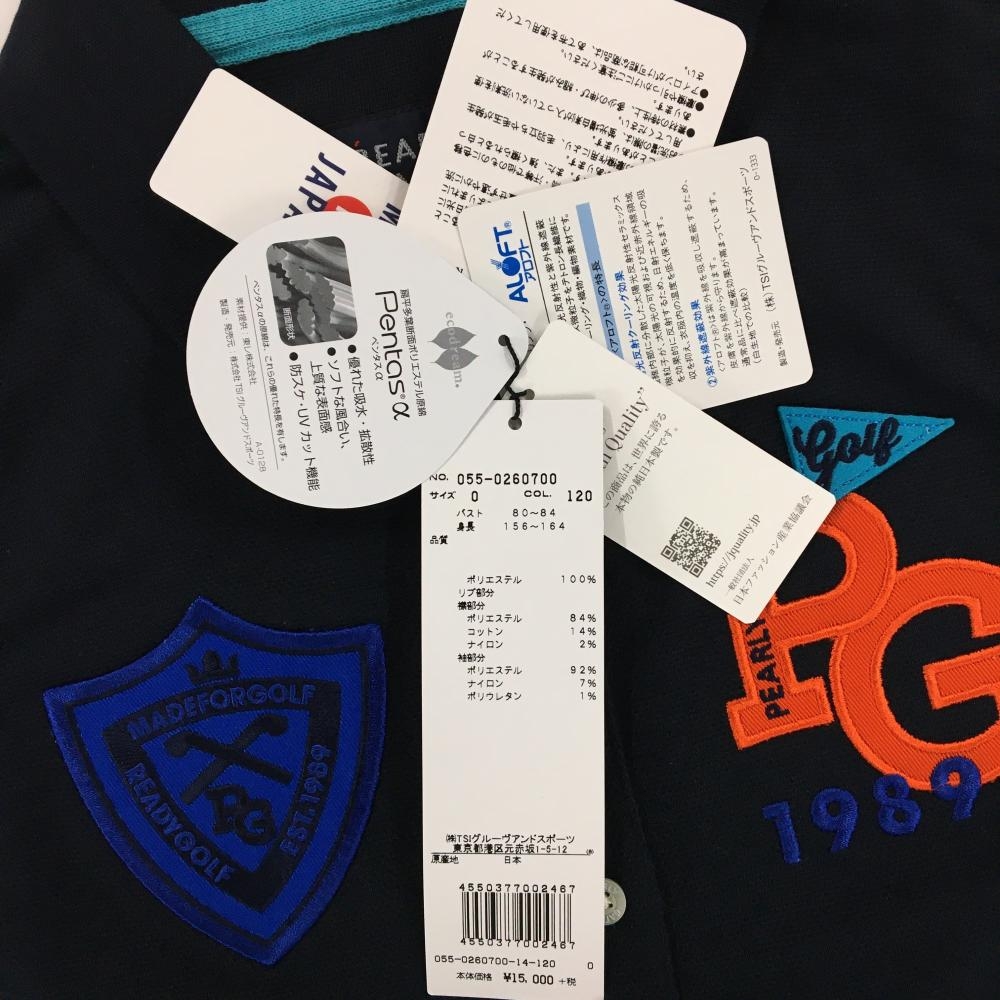 【新品】パーリーゲイツ ノースリーブポロシャツ ダークネイビー×ブルー 胸元ロゴ レディース 0(S) ゴルフウェア PEARLY GATES