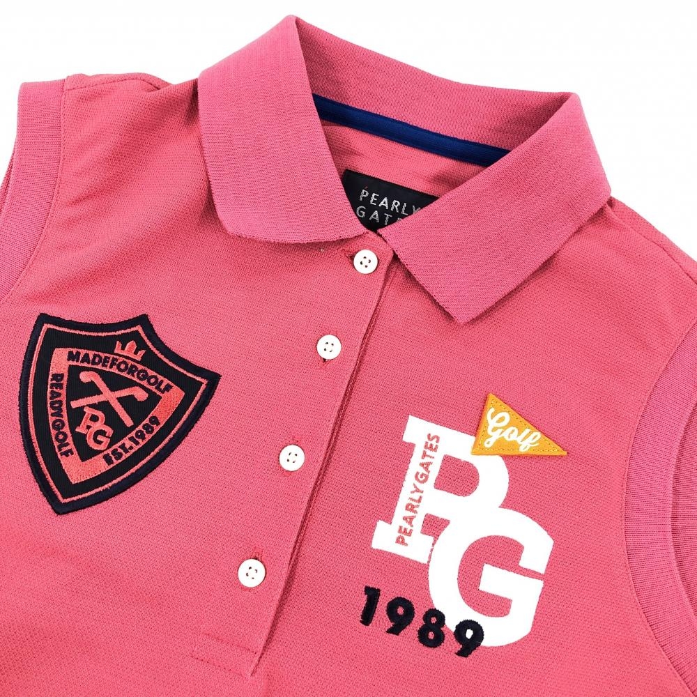 【新品】パーリーゲイツ ノースリーブポロシャツ ピンク×ネイビー 胸元ロゴ レディース 0(S) ゴルフウェア PEARLY GATES