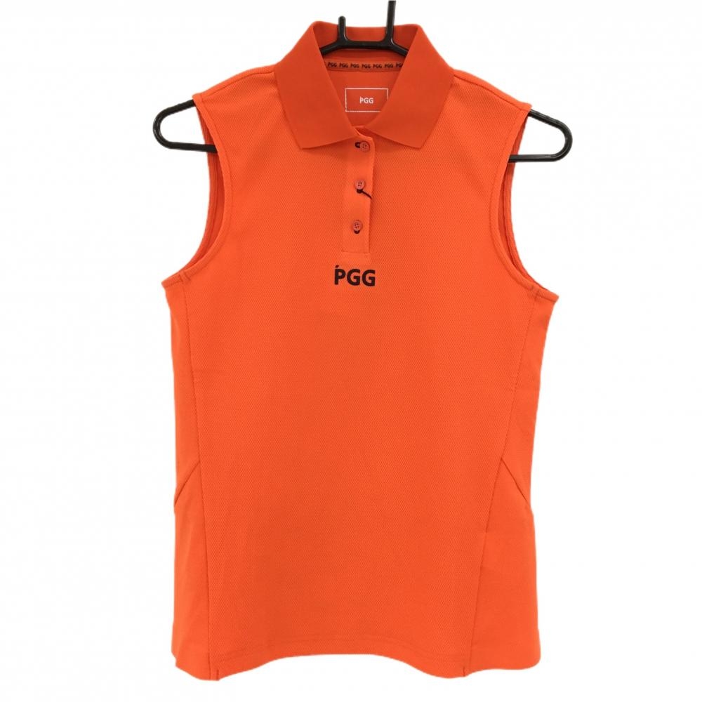 【新品】PGGパーリーゲイツ ノースリーブポロシャツ オレンジ×ネイビー ロゴプリント レディース 0(S) ゴルフウェア PEARLY GATES