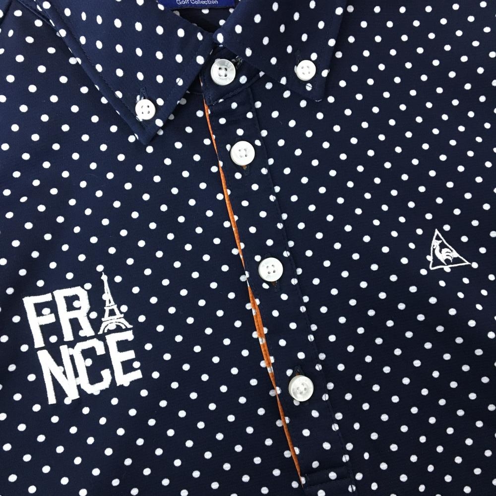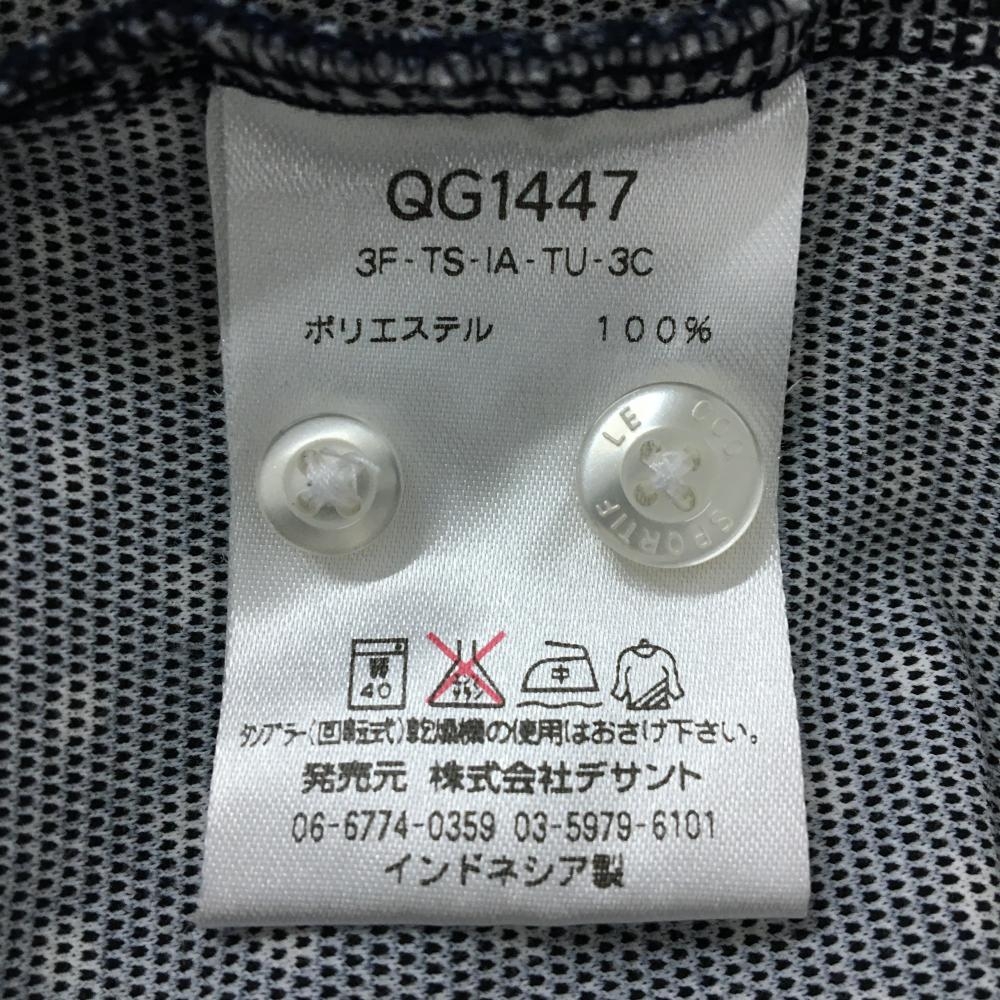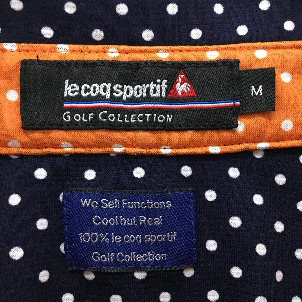 【美品】ルコックゴルフ 長袖ポロシャツ ネイビー×白 ドット柄 ロゴ刺しゅう メンズ M ゴルフウェア le coq sportif