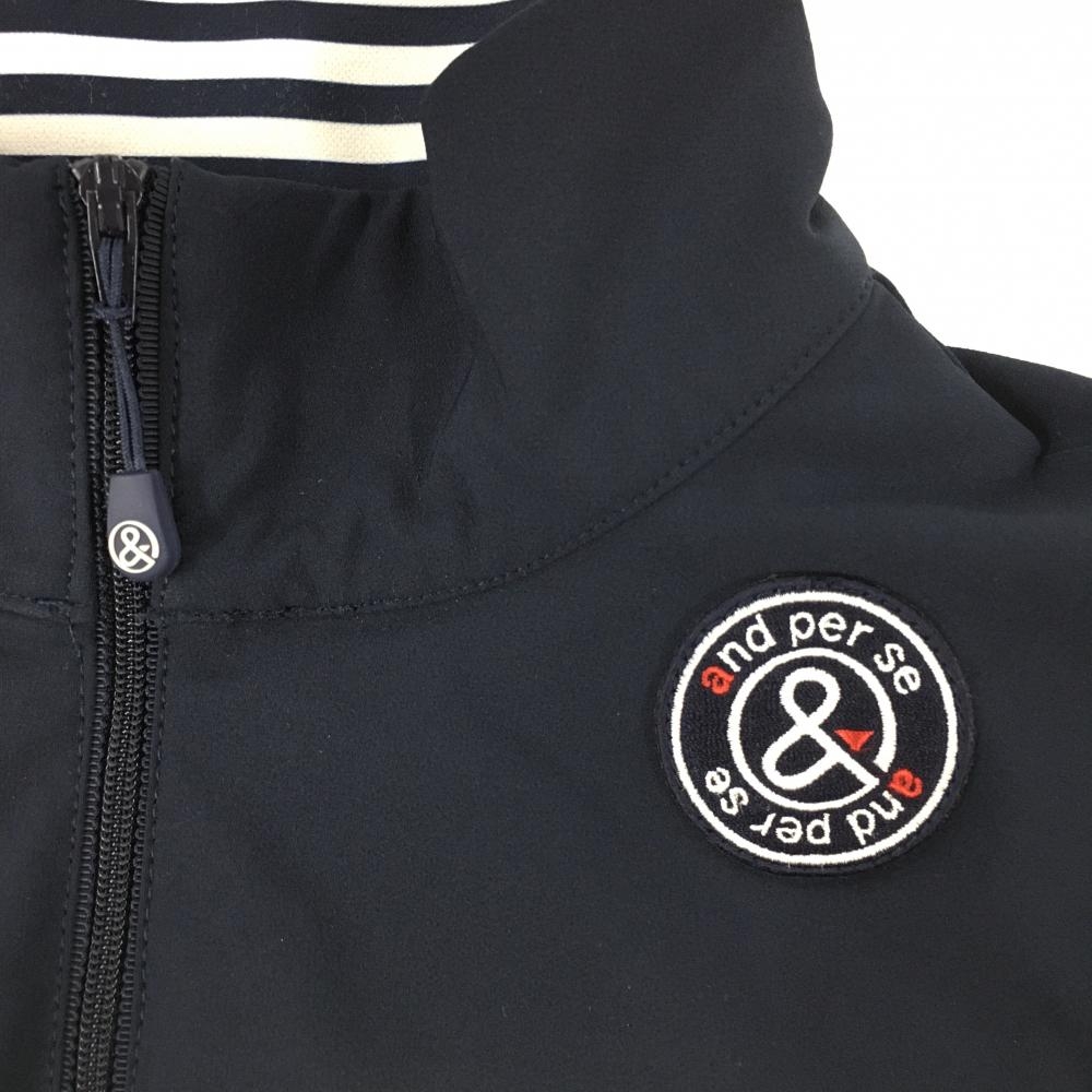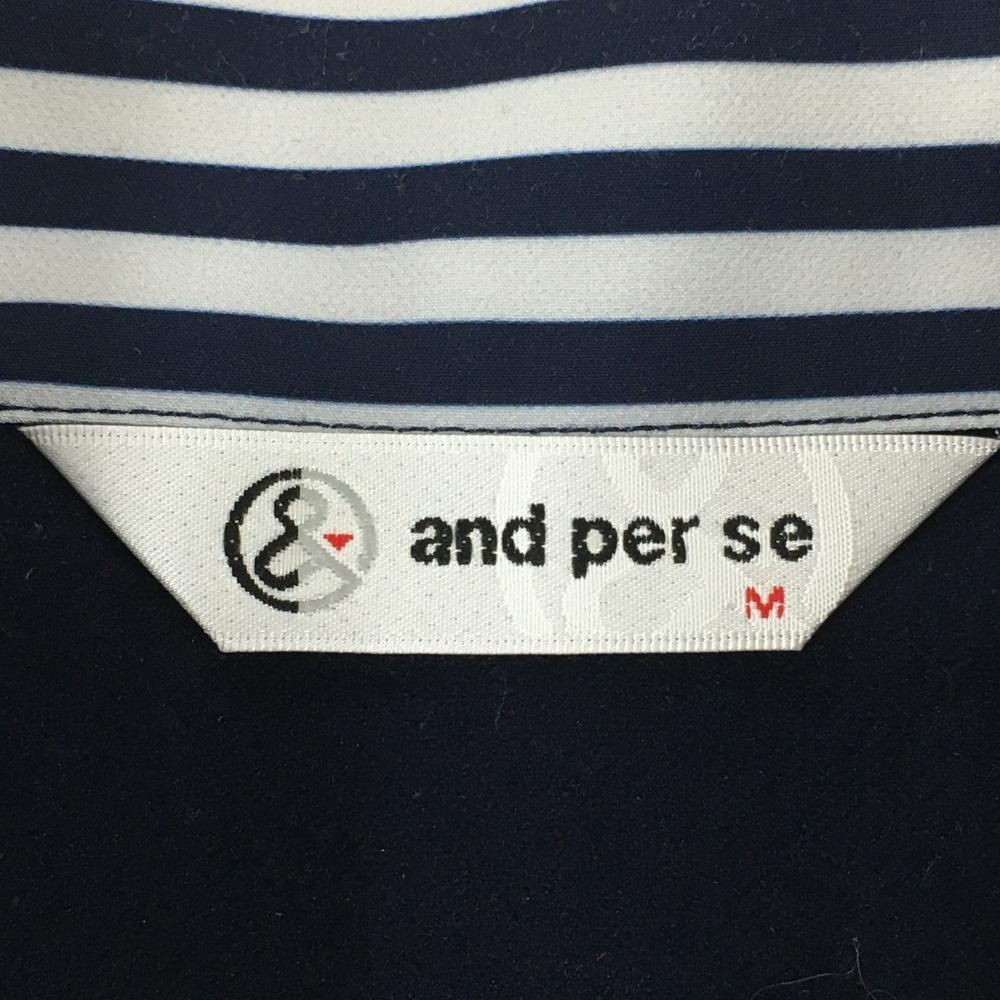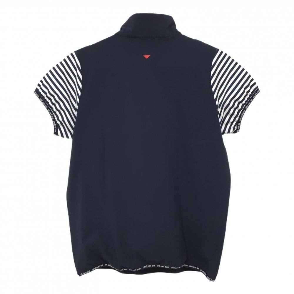 【超美品】アンパスィ 半袖ハイネックシャツ ネイビー×白 袖ボーダー 裏起毛 ハーフジップ レディース M ゴルフウェア and per se