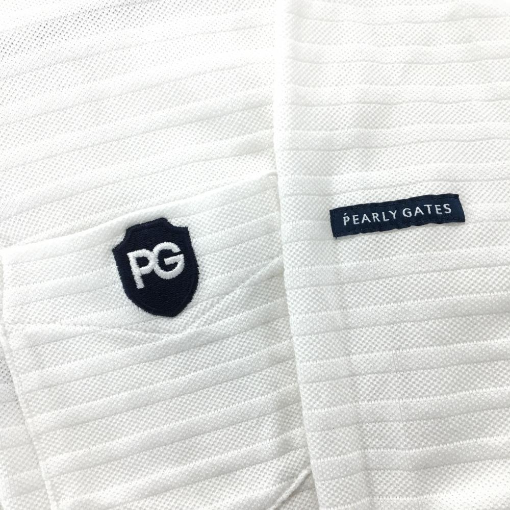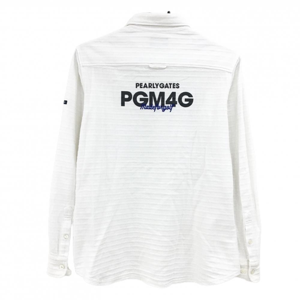 パーリーゲイツ 長袖ポロシャツ 白 ボーダー織生地 胸ポケット ボタンダウン メンズ 4(M) ゴルフウェア PEARLY GATES