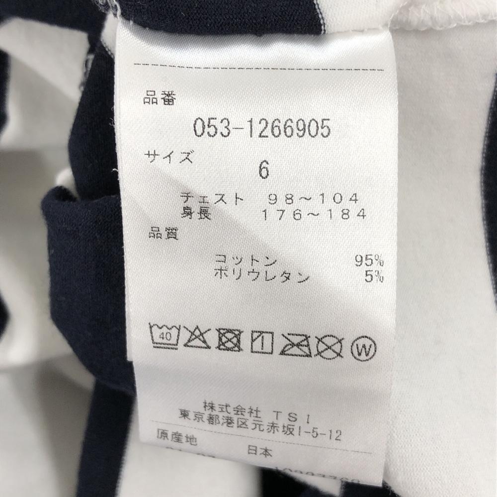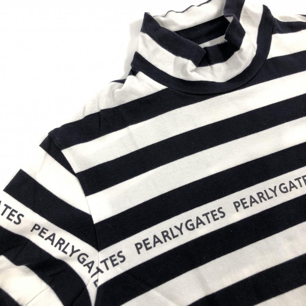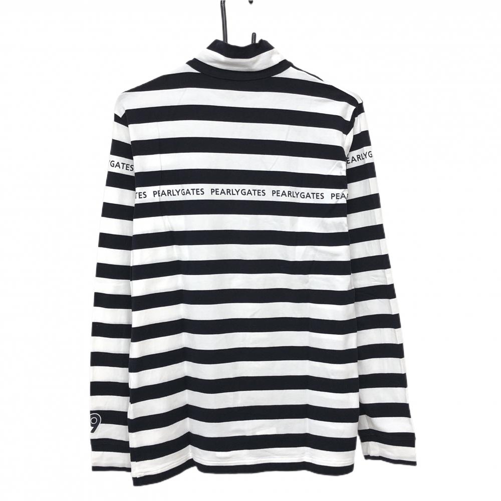 【美品】パーリーゲイツ 長袖ハイネックシャツ 白×黒 ボーダー メンズ 6(XL) ゴルフウェア PEARLY GATES