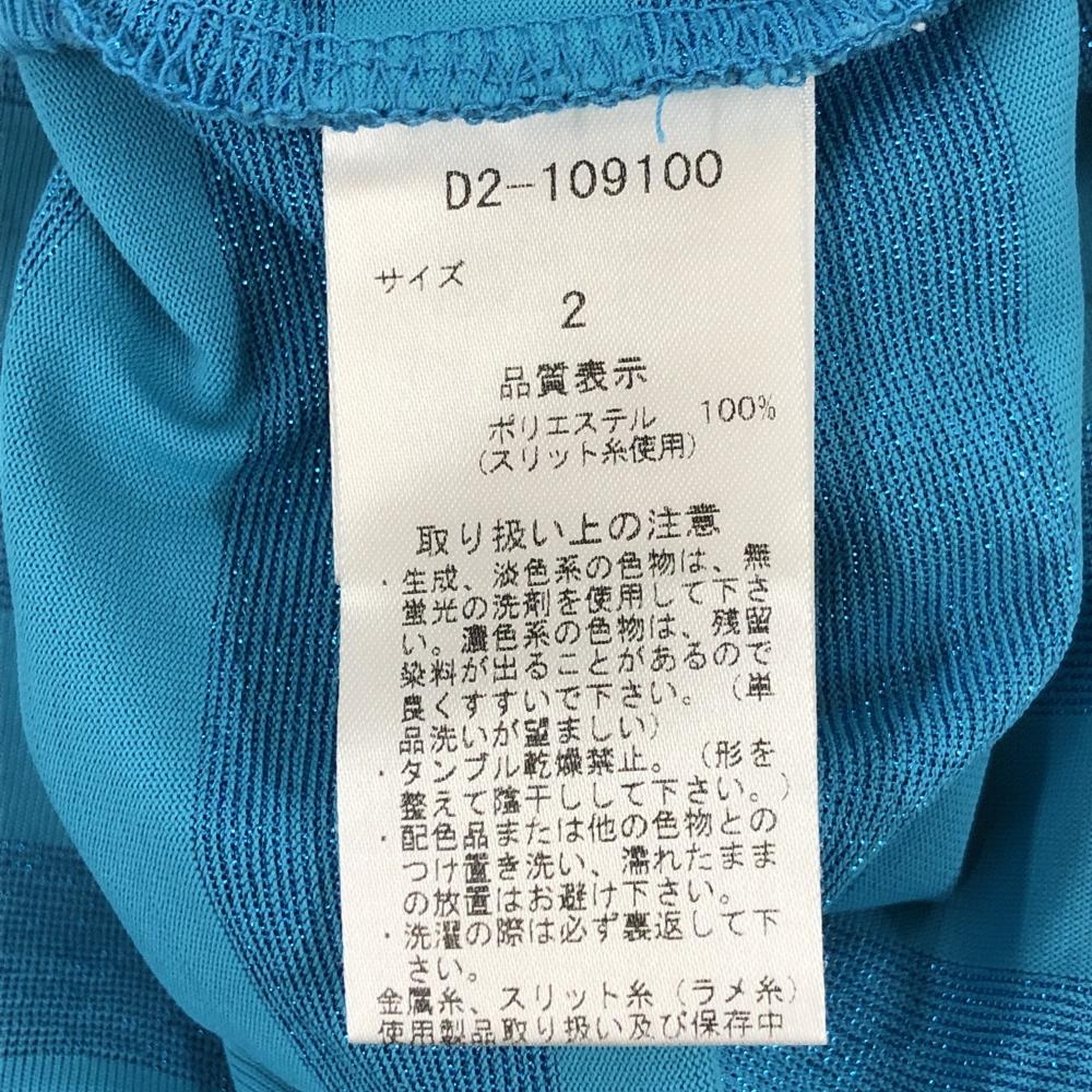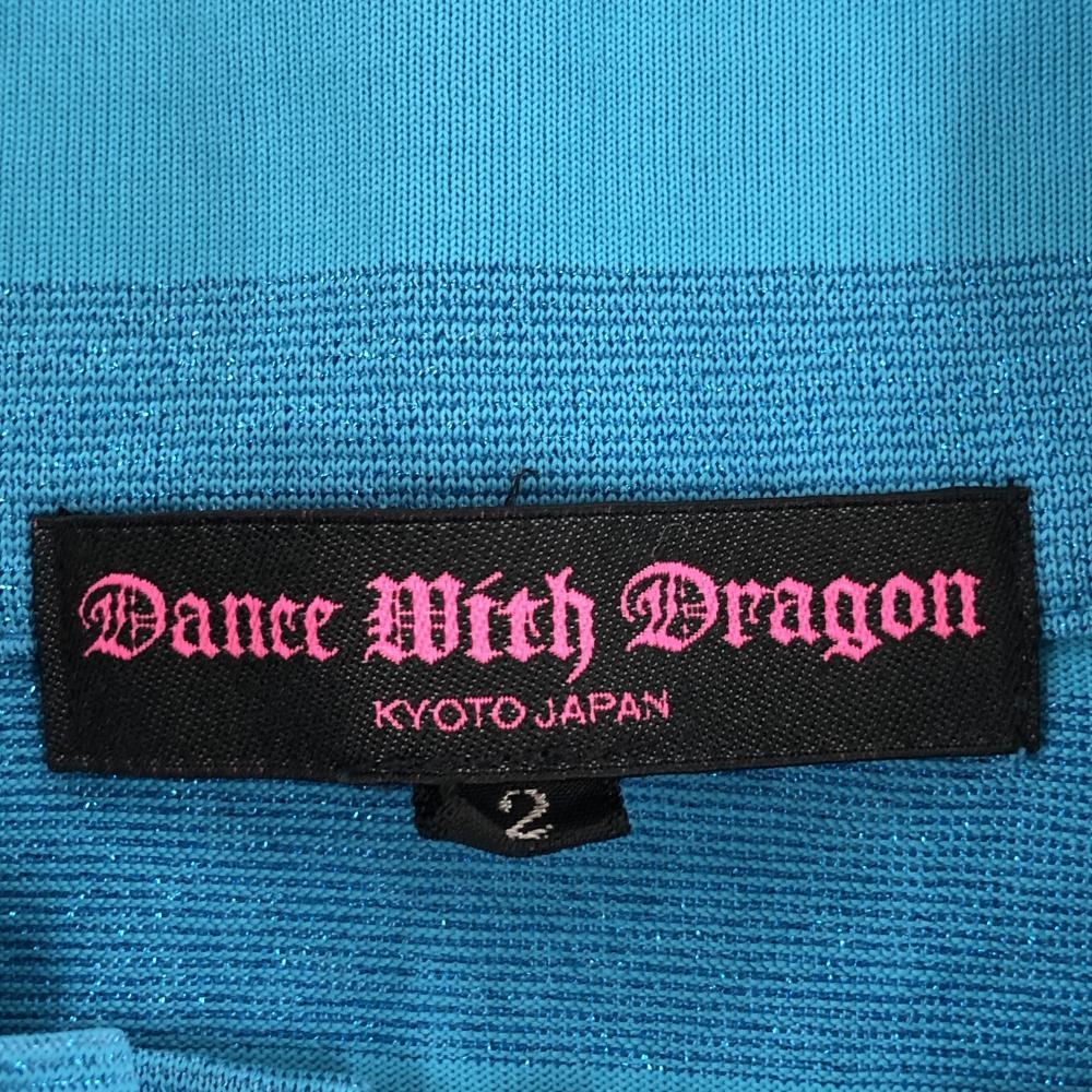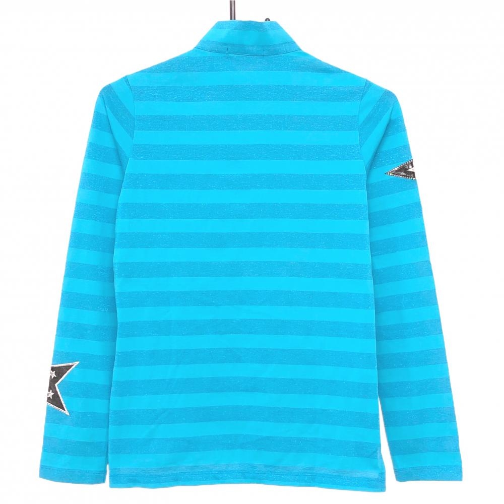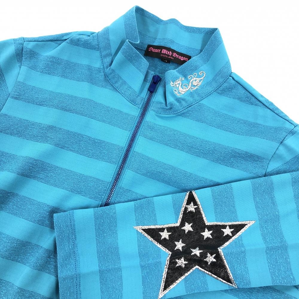 【超美品】ダンスウィズドラゴン 長袖ハイネックシャツ ターコイズブルー ラメボーダー レディース 2(M) ゴルフウェア Dance With Dragon