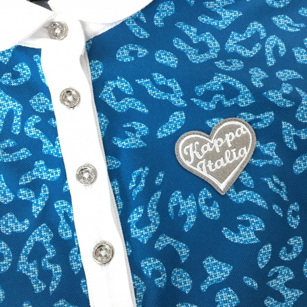 【超美品】カッパ 半袖ポロシャツ ブルー×白 レオパード ハートワッペン レディース M ゴルフウェア Kappa
