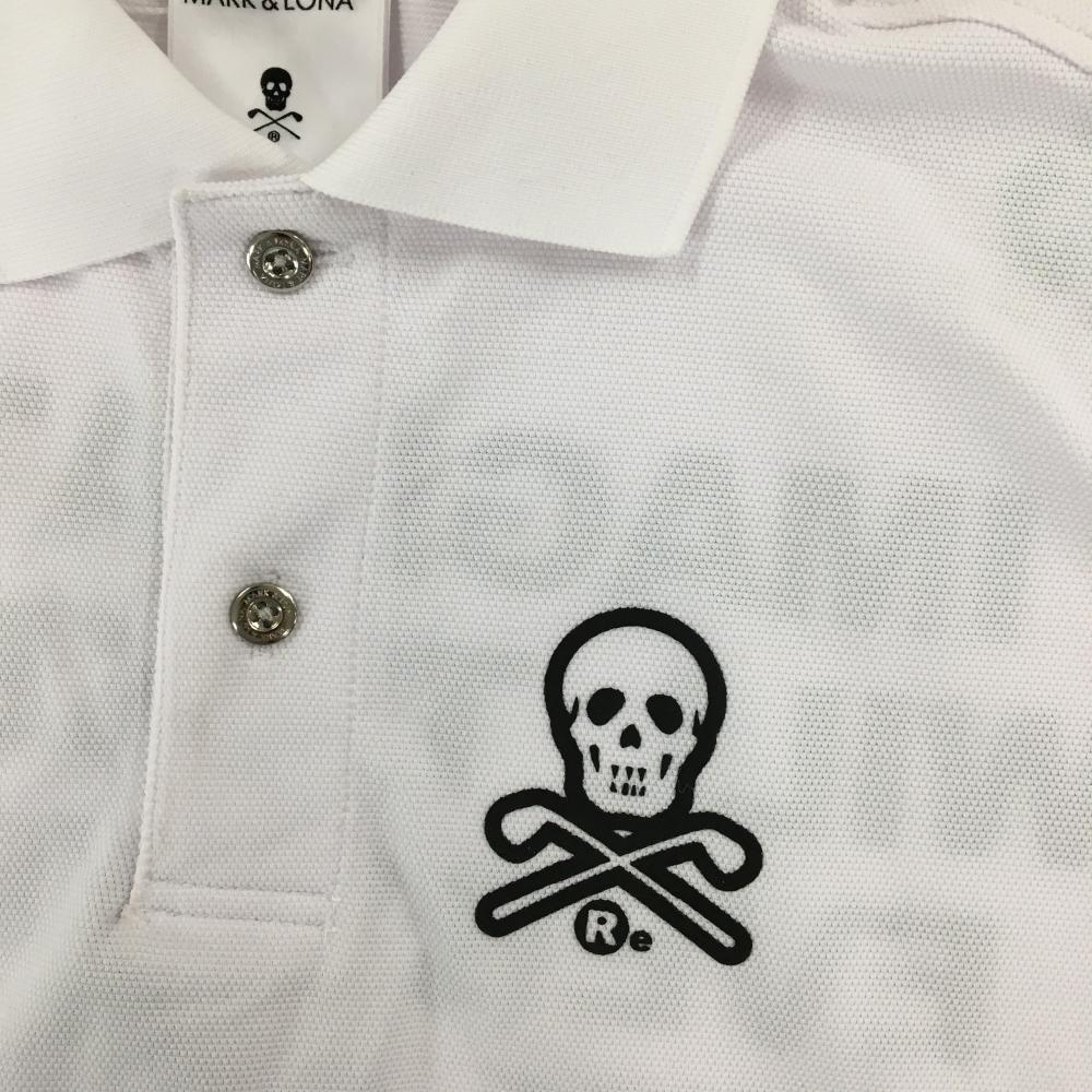 【新品】マークアンドロナ 半袖ポロシャツ 白×黒 バックロゴ スカル メンズ 42(XL) ゴルフウェア MARK&LONA
