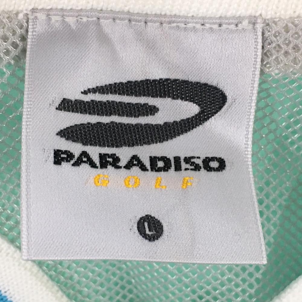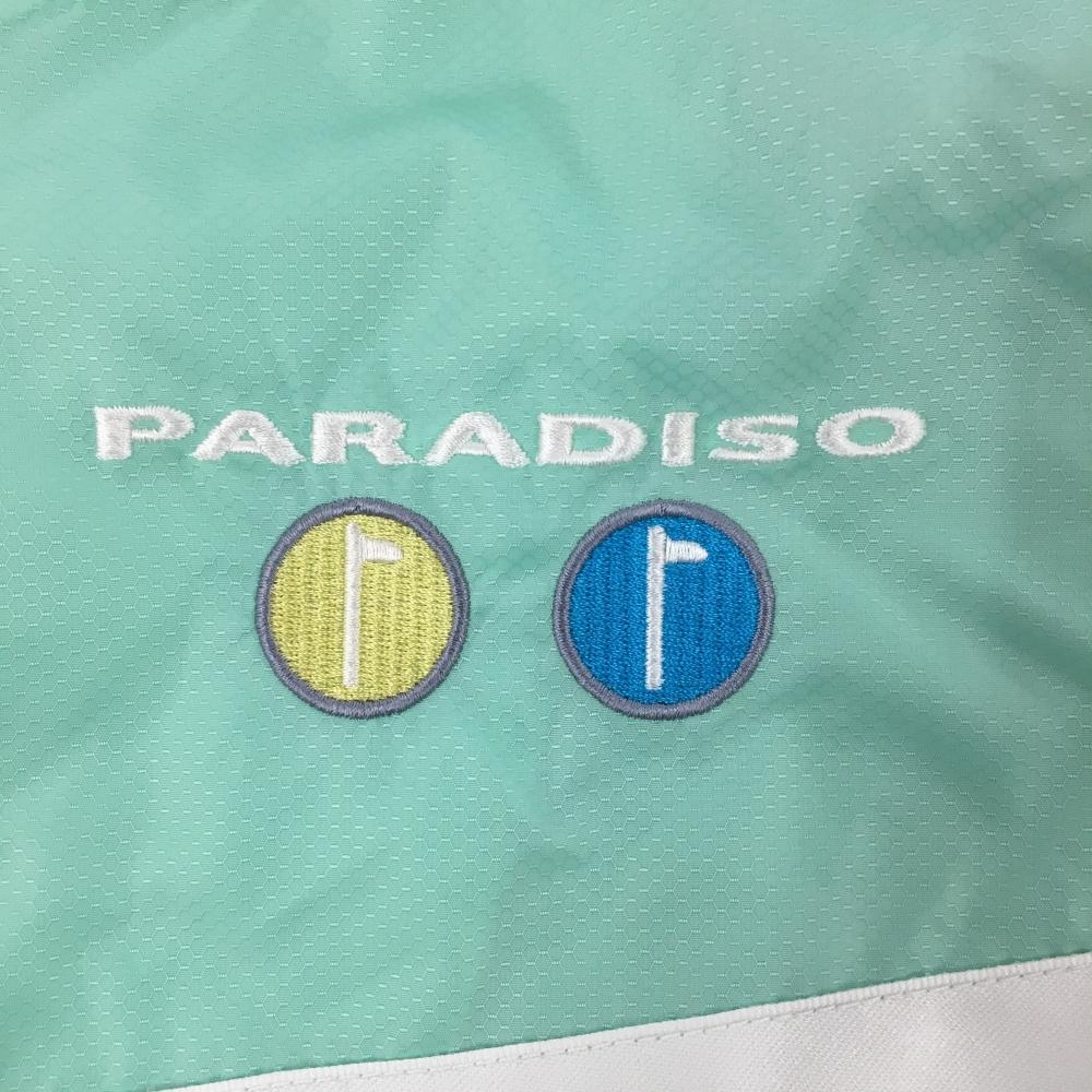 【美品】パラディーゾ 半袖ブルゾン ライトグリーン×白 ハーフジップ 裏地メッシュ 裾ドローコード メンズ L ゴルフウェア Paradiso