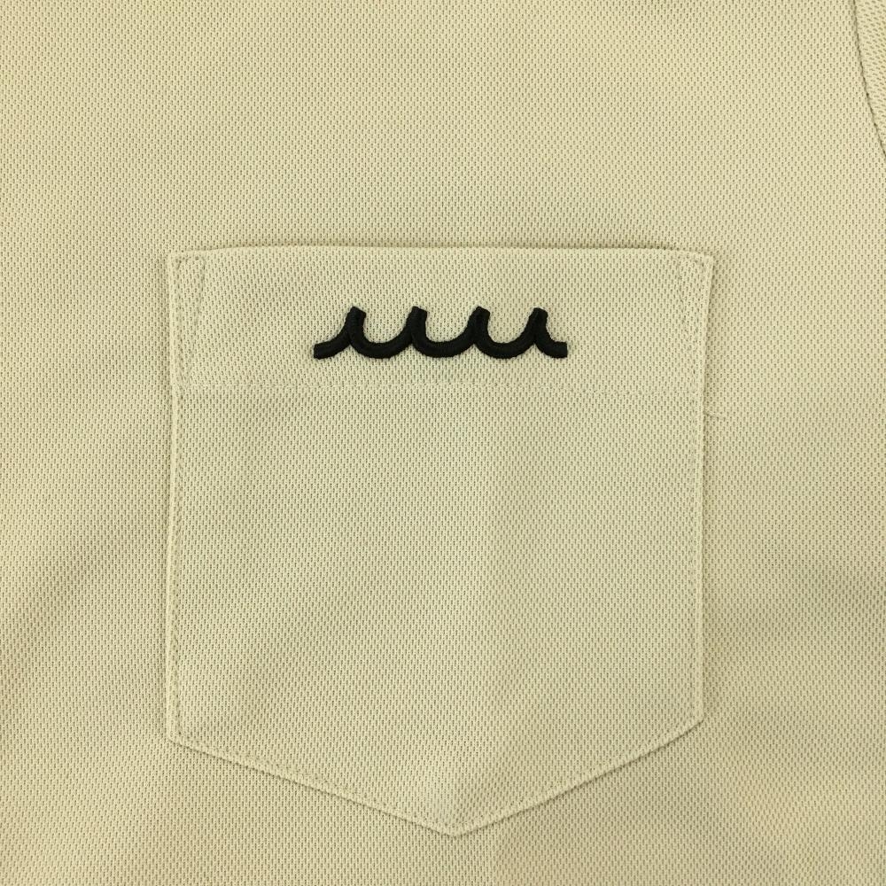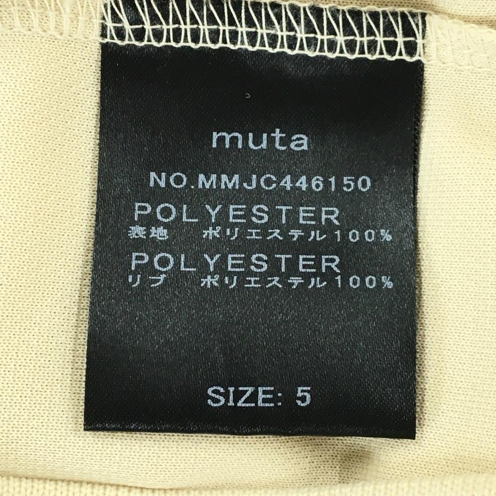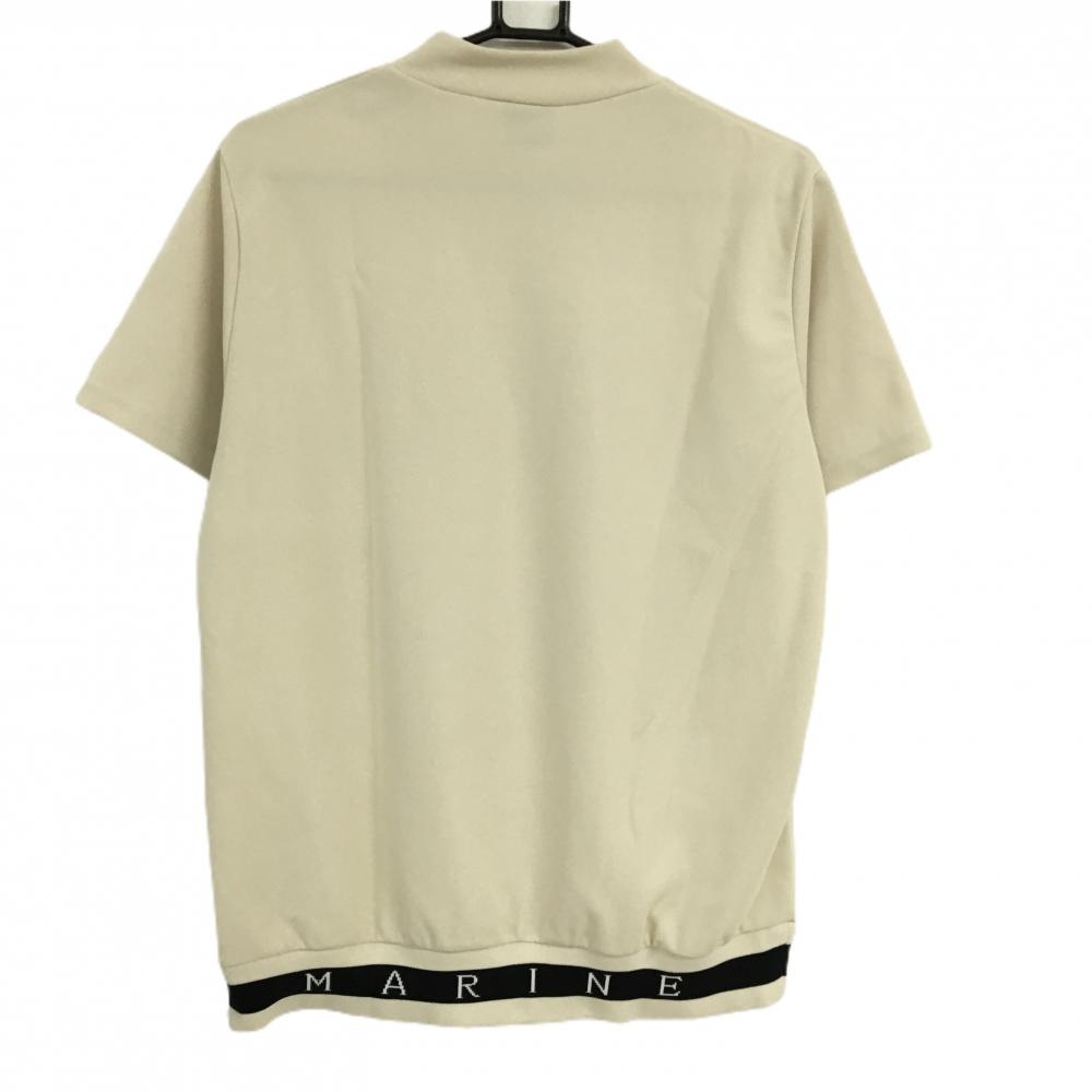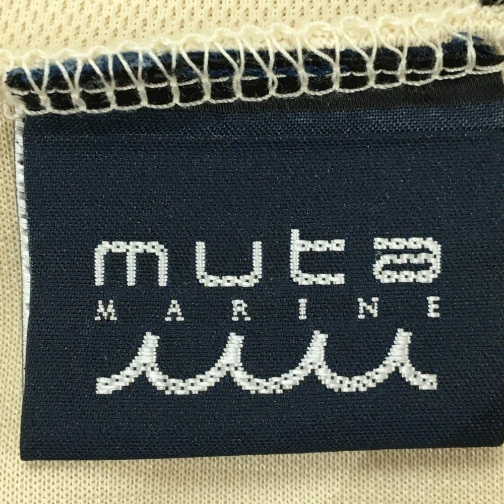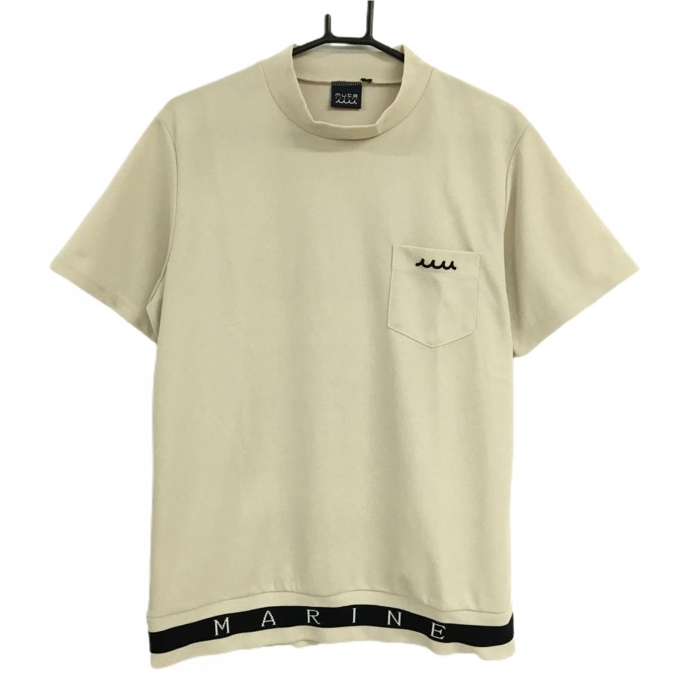 【美品】ムータマリン 半袖ハイネックシャツ ベージュ×黒 胸ポケット 裾ロゴ メンズ 5(M) ゴルフウェア 2024年モデル muta
