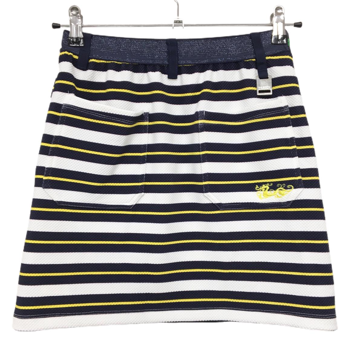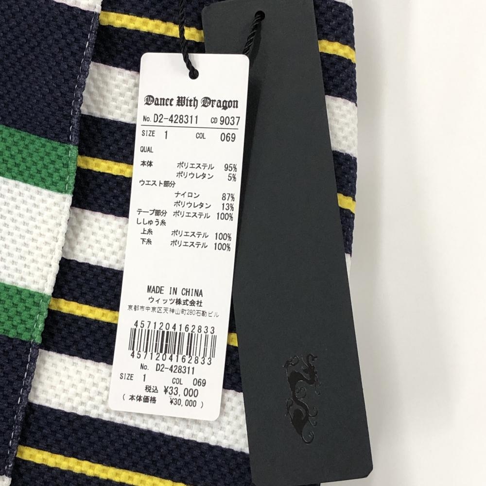 【新品】ダンスウィズドラゴン スカート ネイビー×グリーン ボーダー 巻きスカート風 レディース 1(S) ゴルフウェア Dance With Dragon