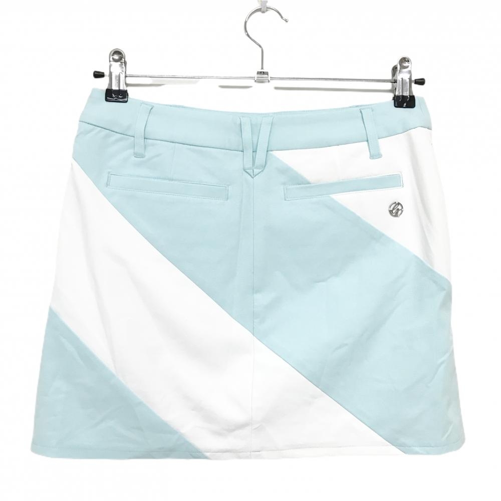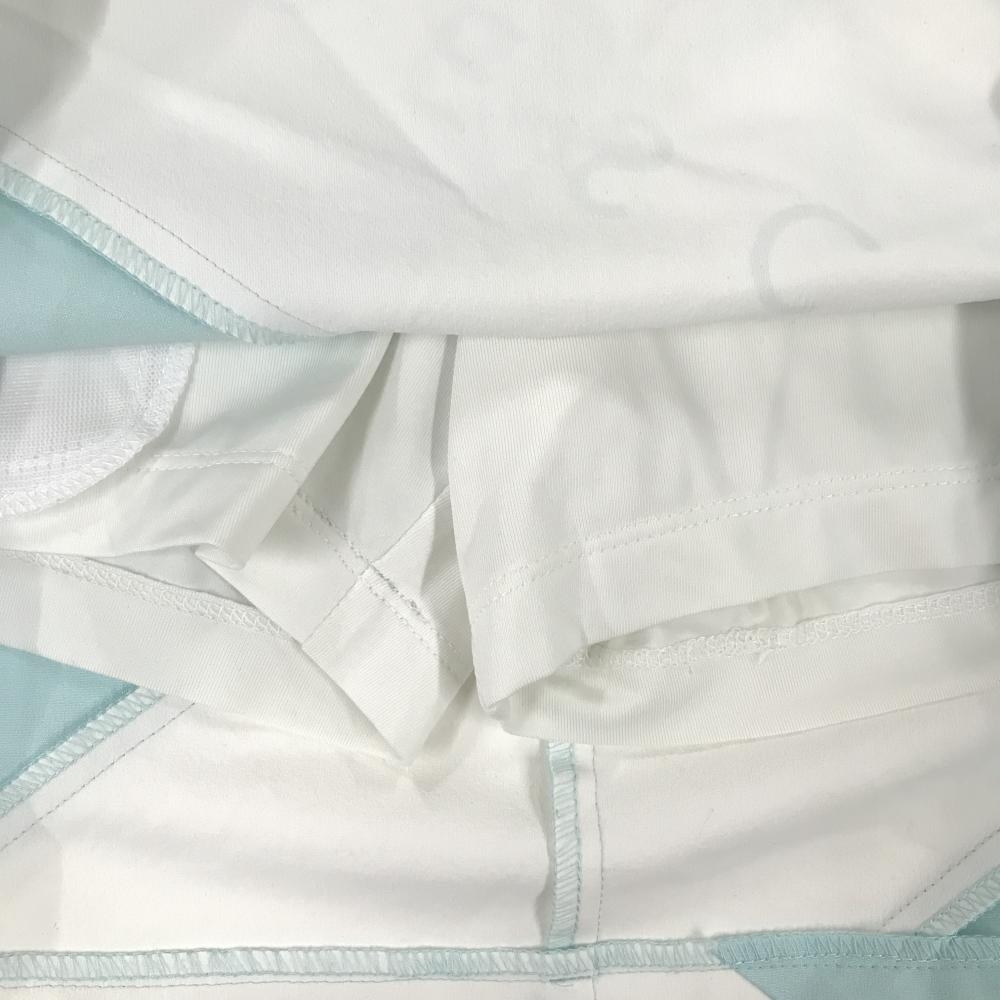 【美品】デサントゴルフ スカート ライトブルー×白 裾立体ロゴ 内側インナーパンツ 中田英寿 レディース 61/S ゴルフウェア DESCENTE