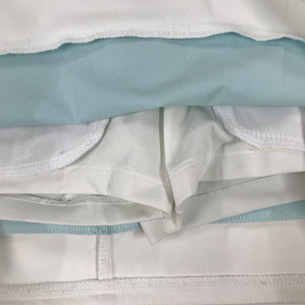 【超美品】デサントゴルフ スカート ライトブルー×白 後ろ立体ロゴ 内側インナーパンツ 中田英寿 レディース 61/S ゴルフウェア DESCENTE