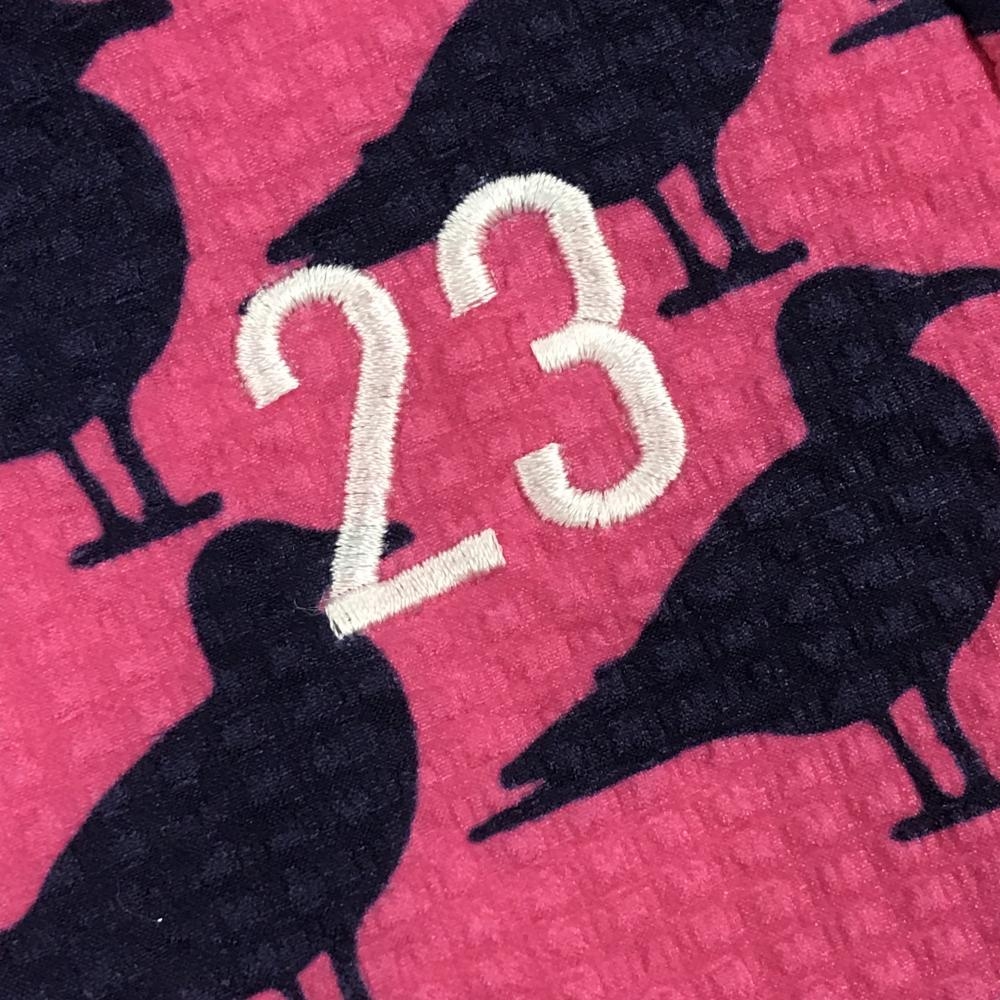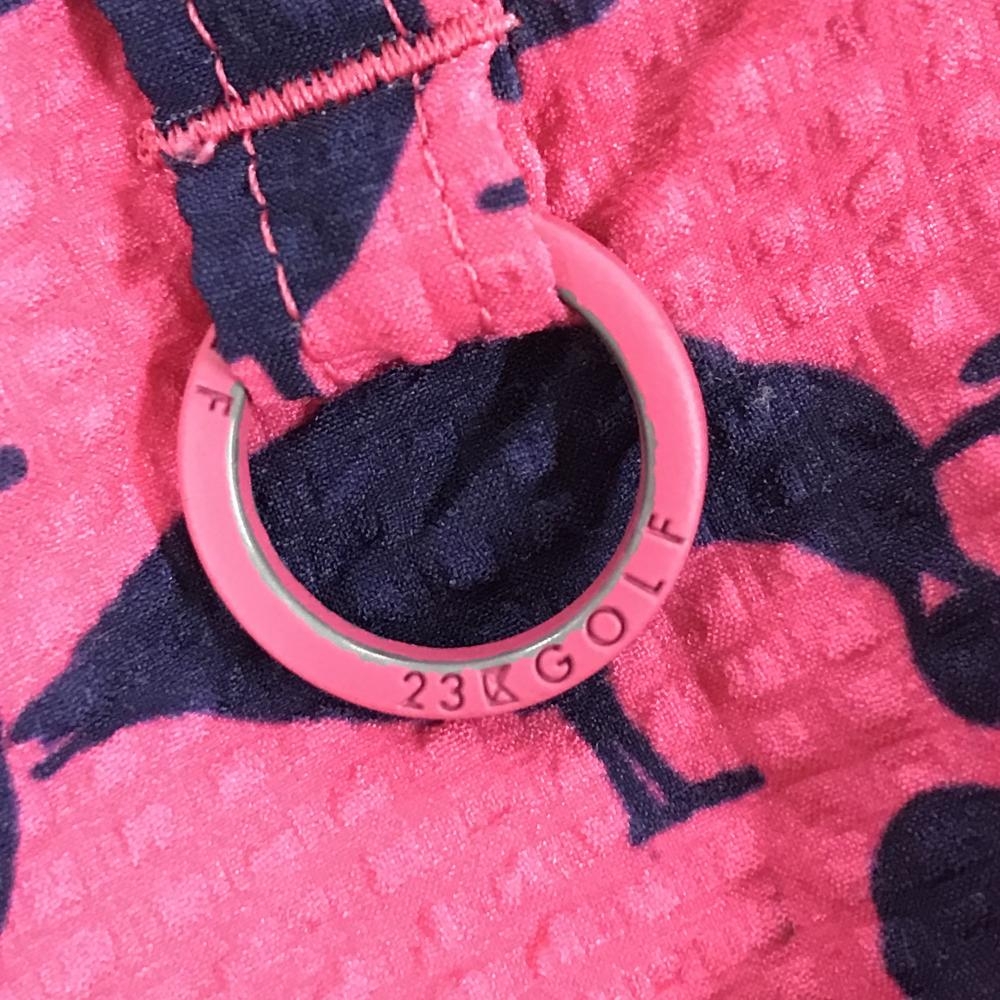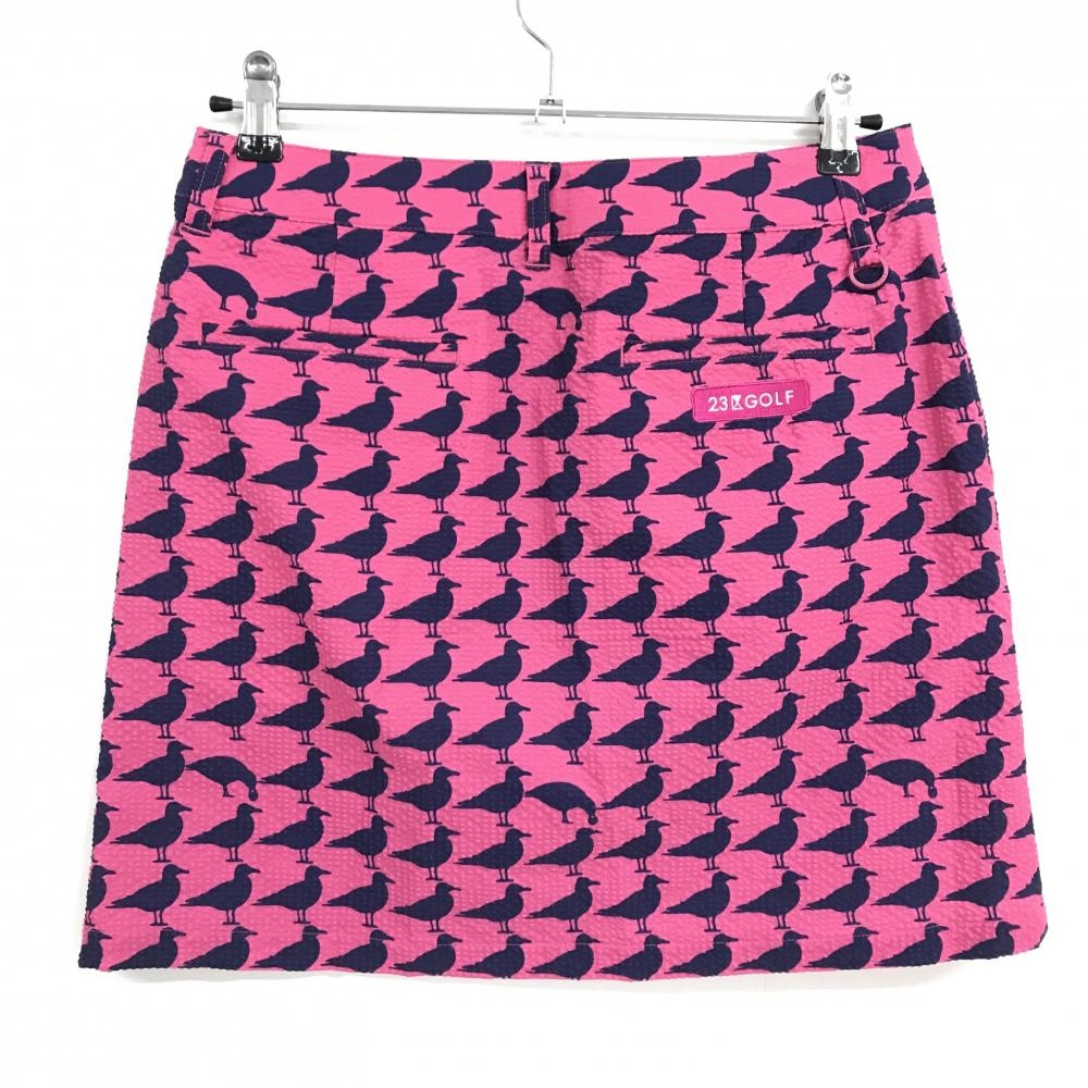 【美品】23区ゴルフ スカート ピンク×ネイビー 鳥総柄 サッカー生地 レディース 67 ゴルフウェア 23区