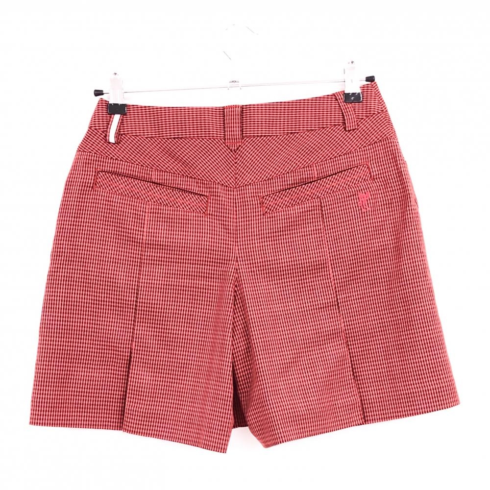 【超美品】アシュワース キュロットスカート レッド×黒 チェック 複数ポケット レディース S ゴルフウェア ASHWORTH