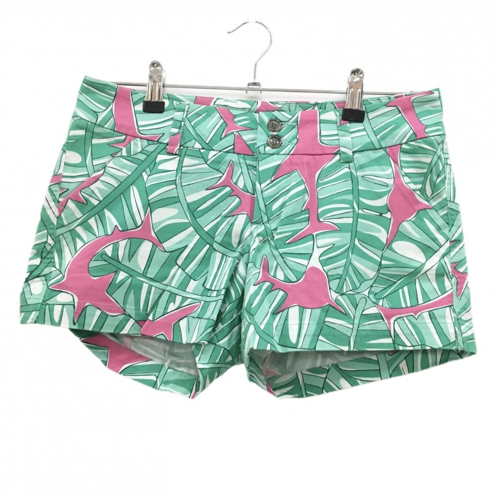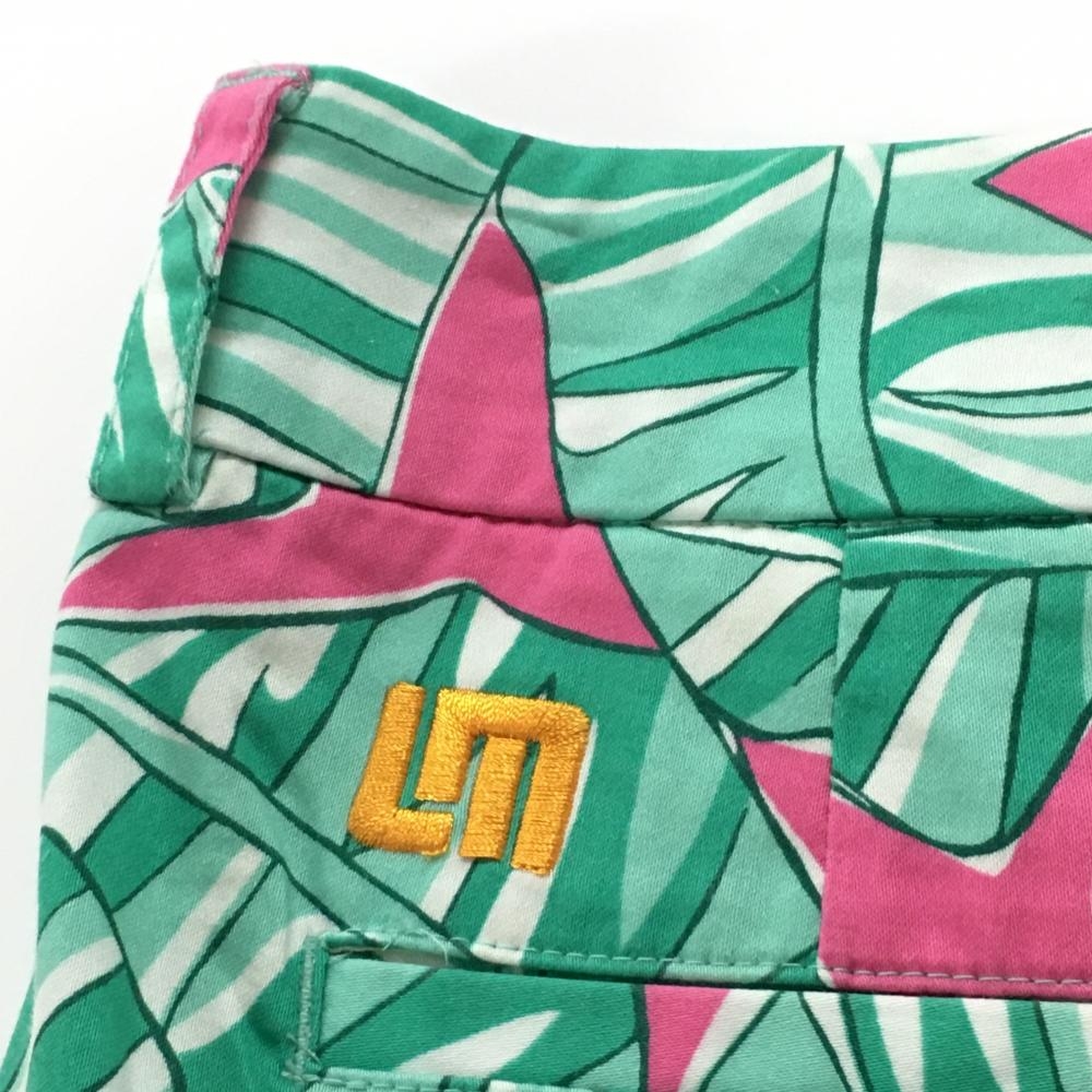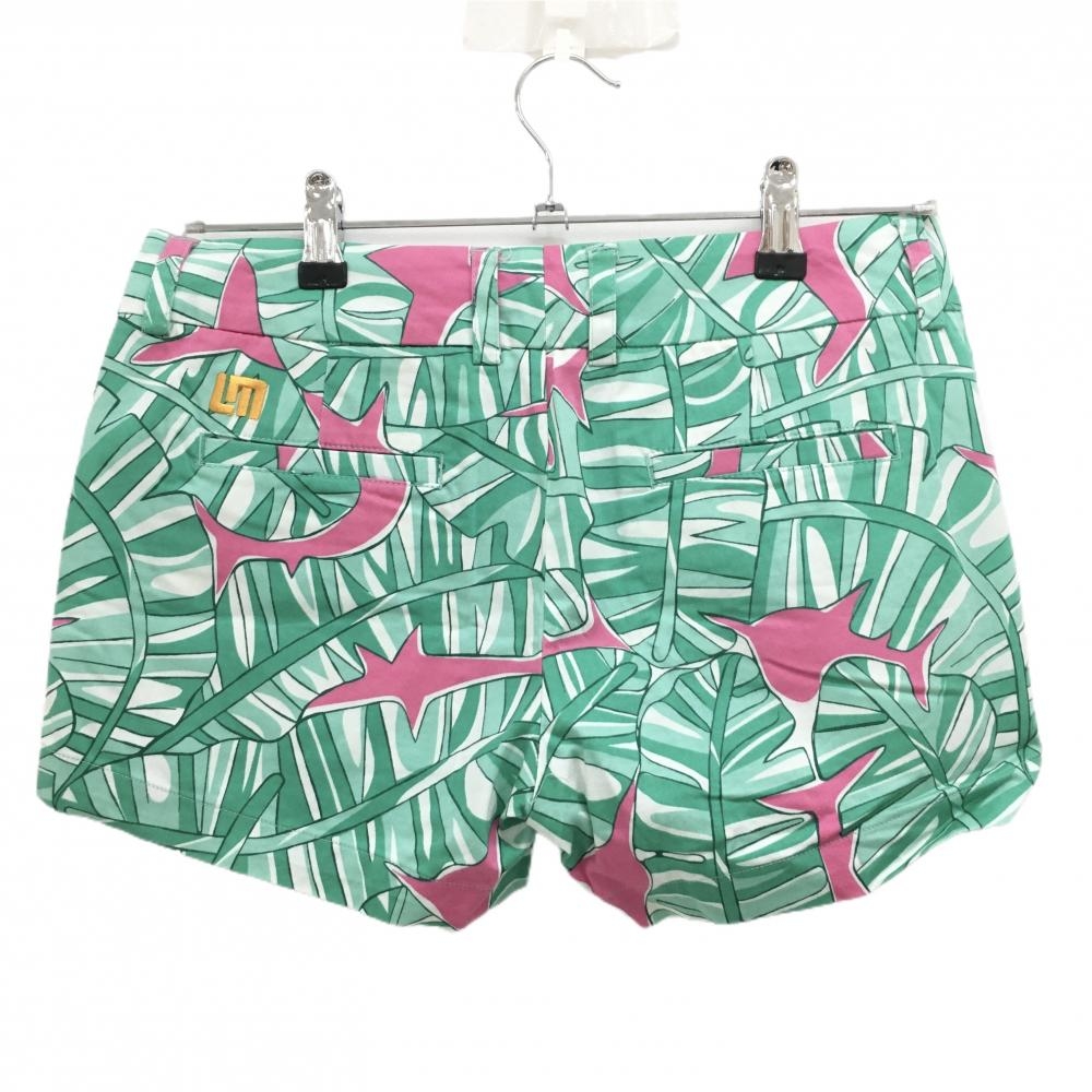 【超美品】ラウドマウス ショートパンツ グリーン×ピンク 総柄 サメ コットン混 レディース US2 ゴルフウェア LOUDMOUTH