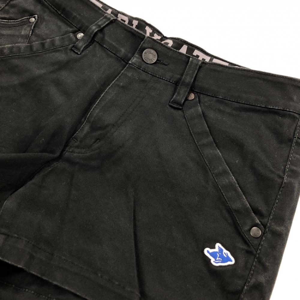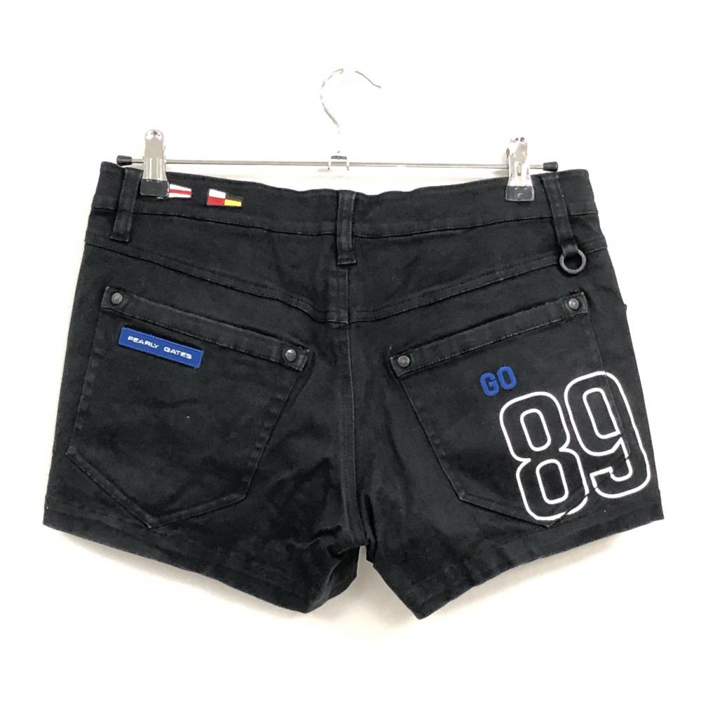 パーリーゲイツ ショートパンツ 黒×ブルー ワッペン コットン混 ストレッチ レディース 1(M) ゴルフウェア PEARLY GATES