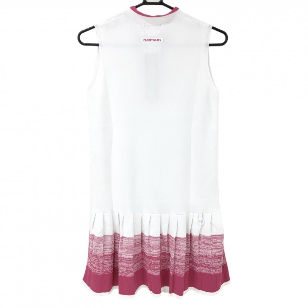 【新品】パーリーゲイツ ノースリーブニットワンピース 白×ピンク ハーフジップ ロゴ刺しゅう レディース 0(S) ゴルフウェア PEARLY GATES