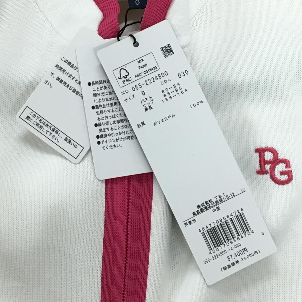 【新品】パーリーゲイツ ノースリーブニットワンピース 白×ピンク ハーフジップ ロゴ刺しゅう レディース 0(S) ゴルフウェア PEARLY GATES