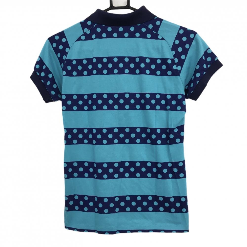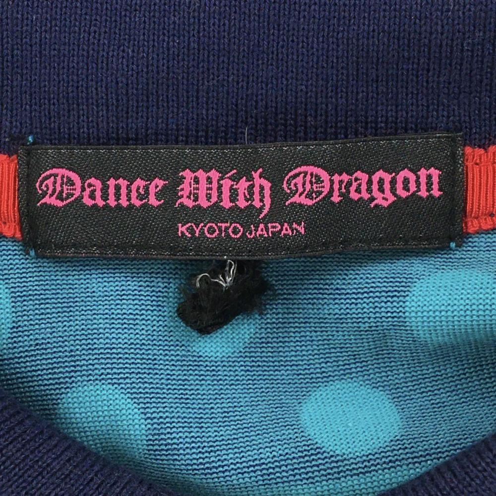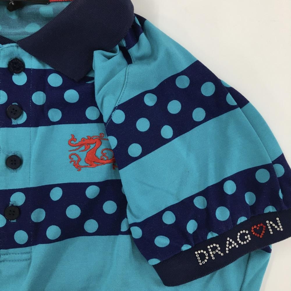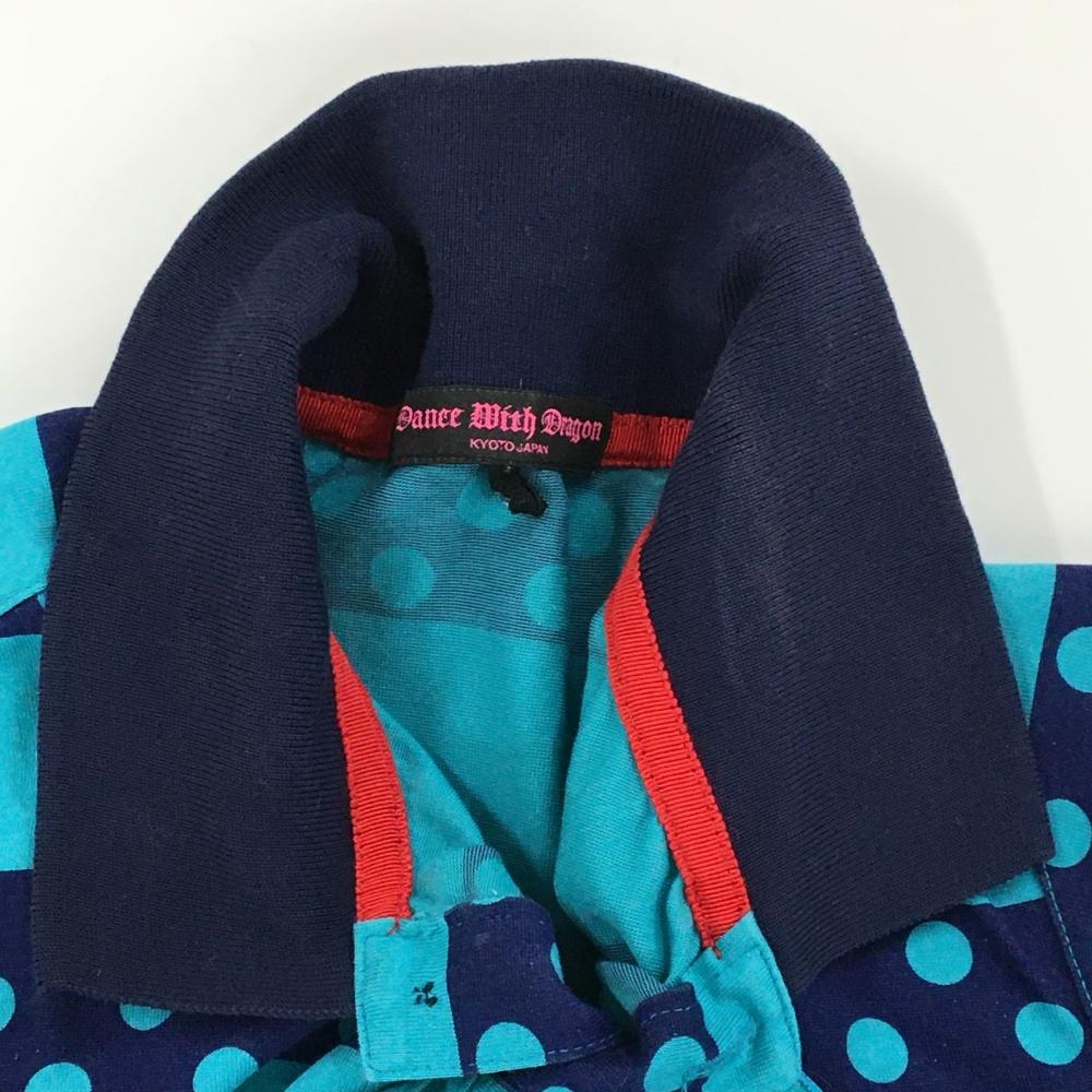 ダンスウィズドラゴン 半袖ポロシャツ ネイビー×ライトブルー ボーダー ドット レディース 2(M) ゴルフウェア Dance With Dragon