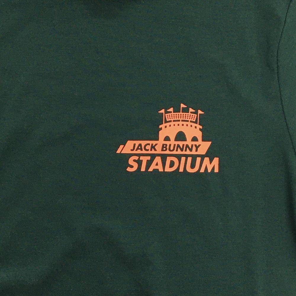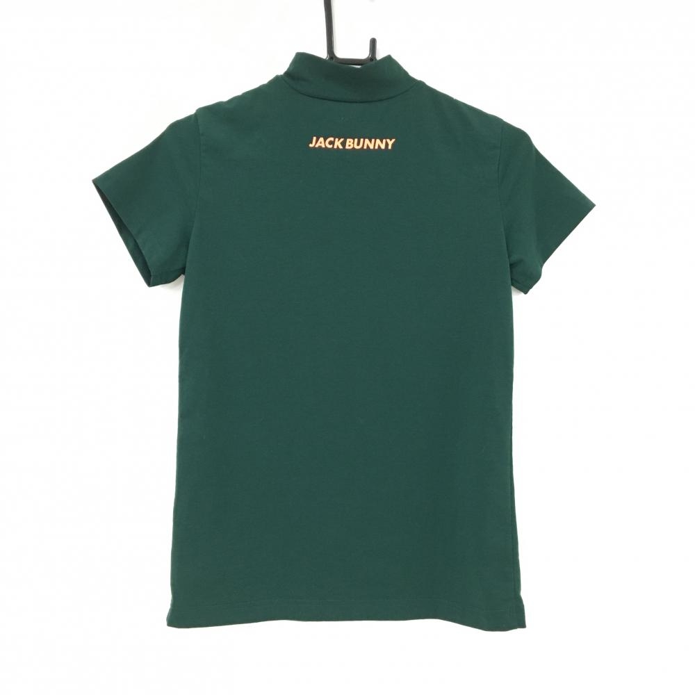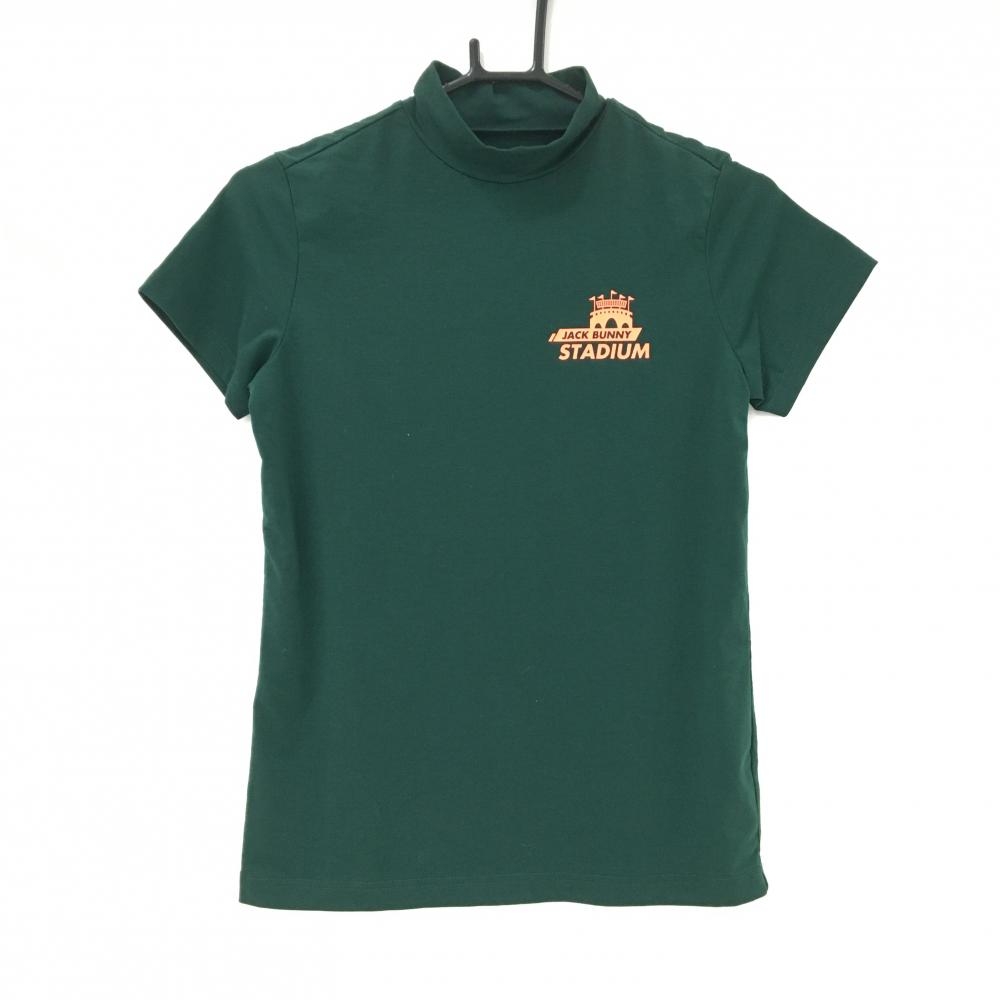 【超美品】ジャックバニー 半袖ハイネックシャツ ダークグリーン ロゴ蛍光オレンジ レディース 0(S) ゴルフウェア Jack Bunny
