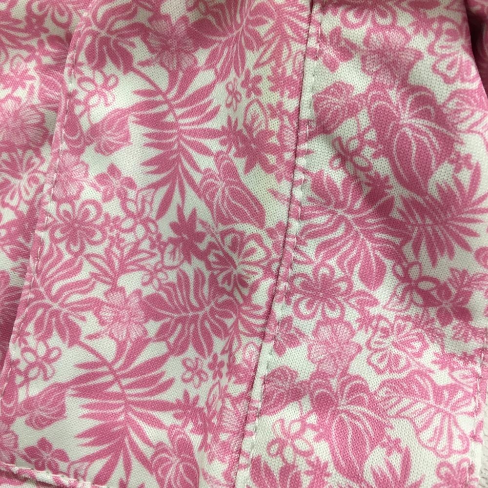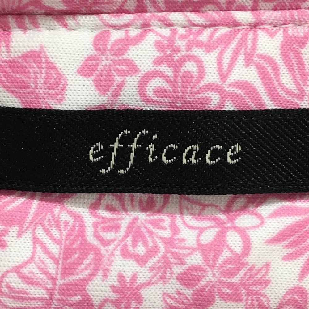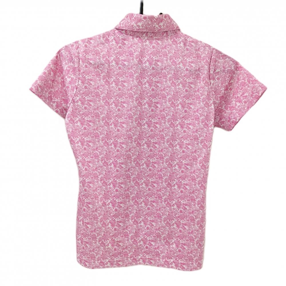 【美品】エフィカス 半袖ポロシャツ 白×ピンク 花・リーフ柄 ストレッチ レディース ゴルフウェア efficace