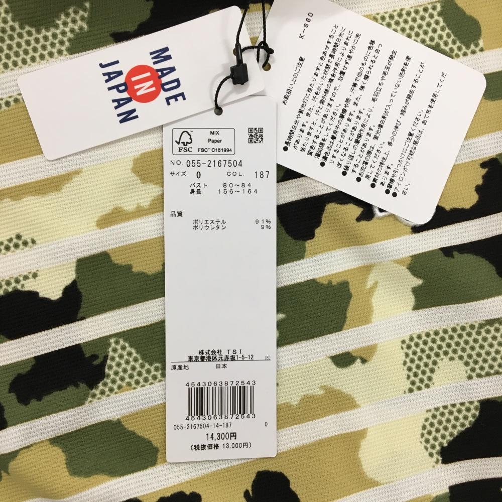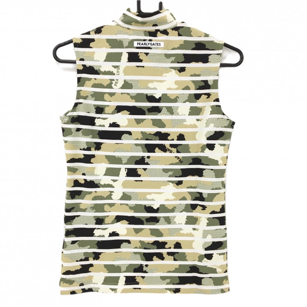 【新品】パーリーゲイツ ノースリーブハイネックシャツ カーキ×ベージュ×白 迷彩柄 レディース 0(S) ゴルフウェア PEARLY GATES