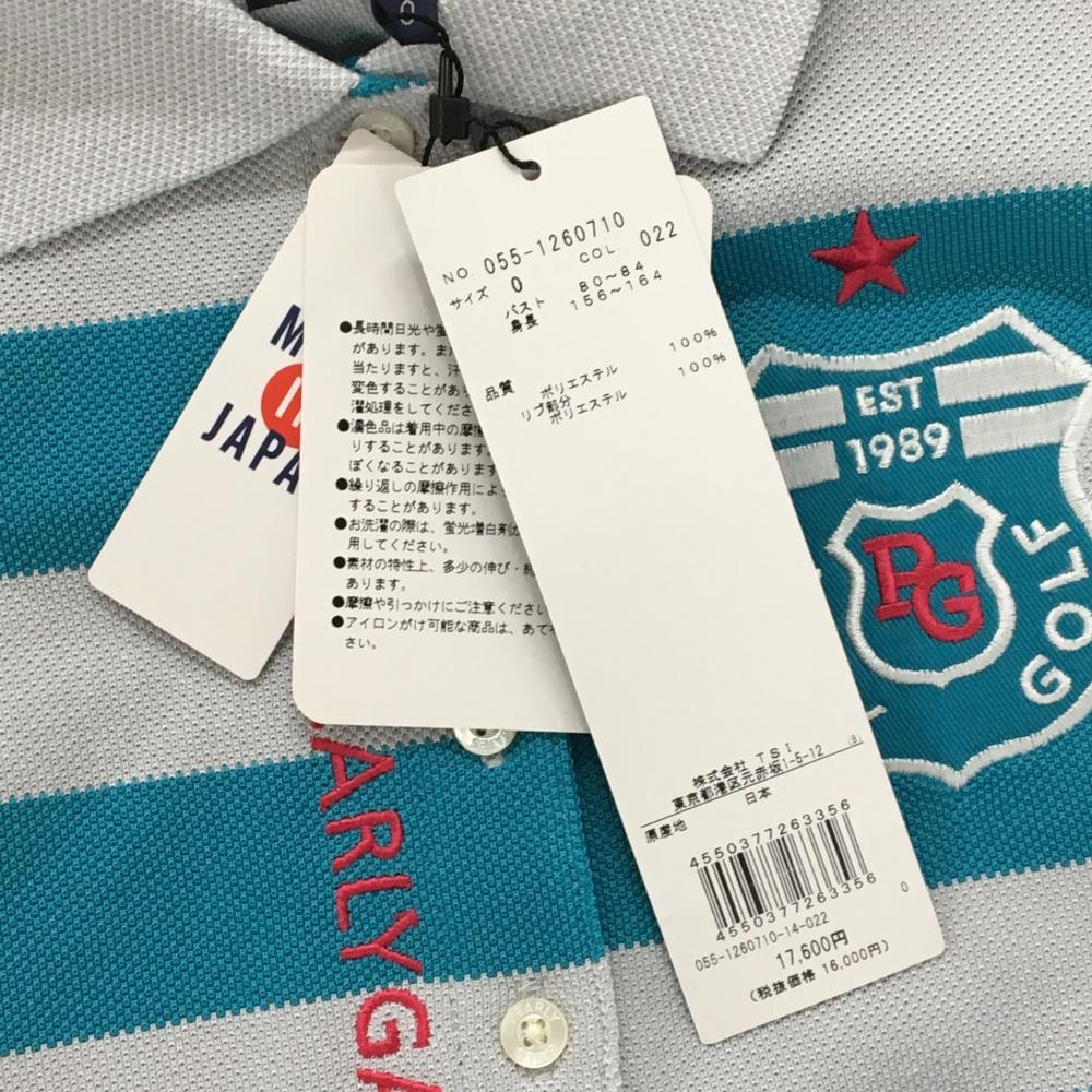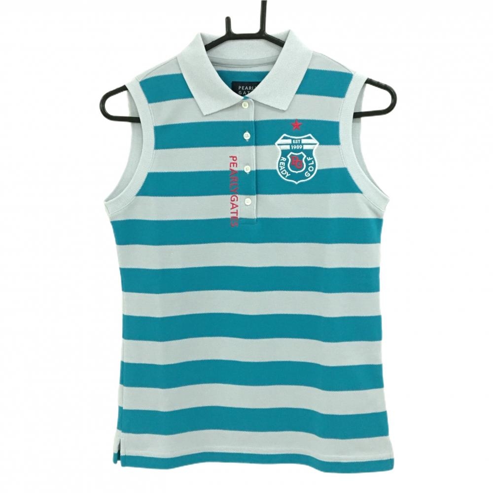 【新品】パーリーゲイツ ノースリーブポロシャツ ライトグレー×グリーンブルー ボーダー レディース 0(S) ゴルフウェア PEARLY GATES