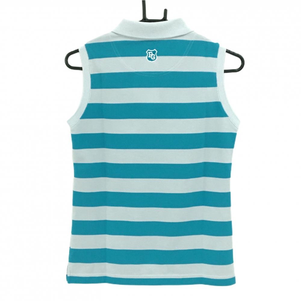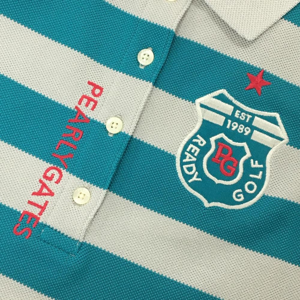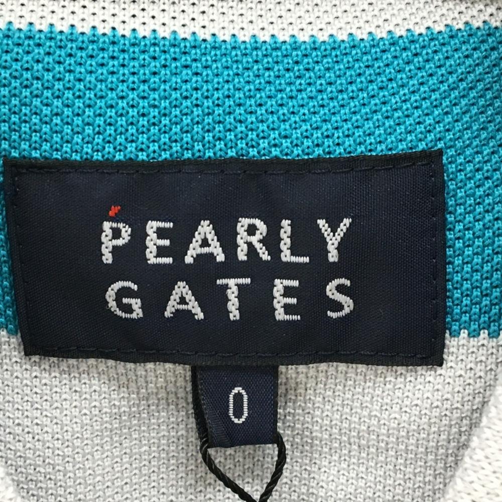 【新品】パーリーゲイツ ノースリーブポロシャツ ライトグレー×グリーンブルー ボーダー レディース 0(S) ゴルフウェア PEARLY GATES