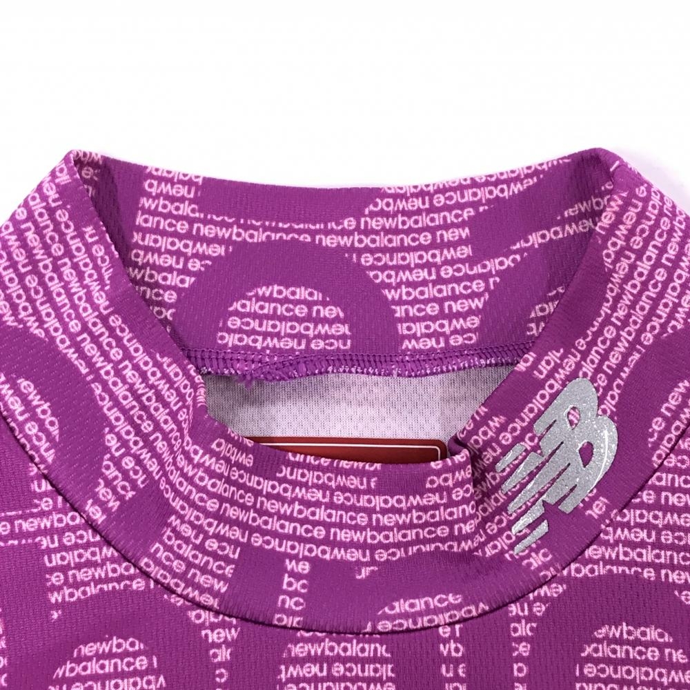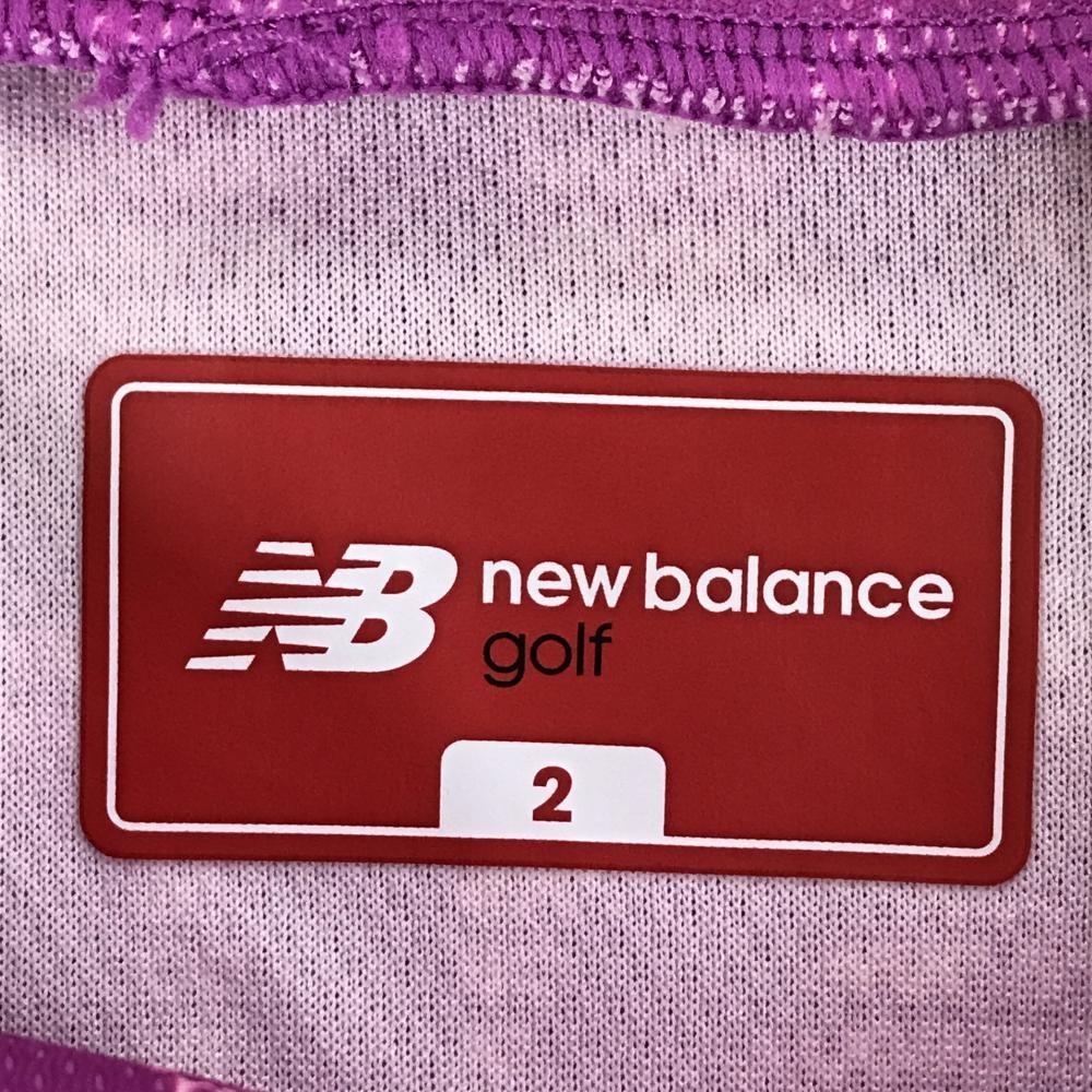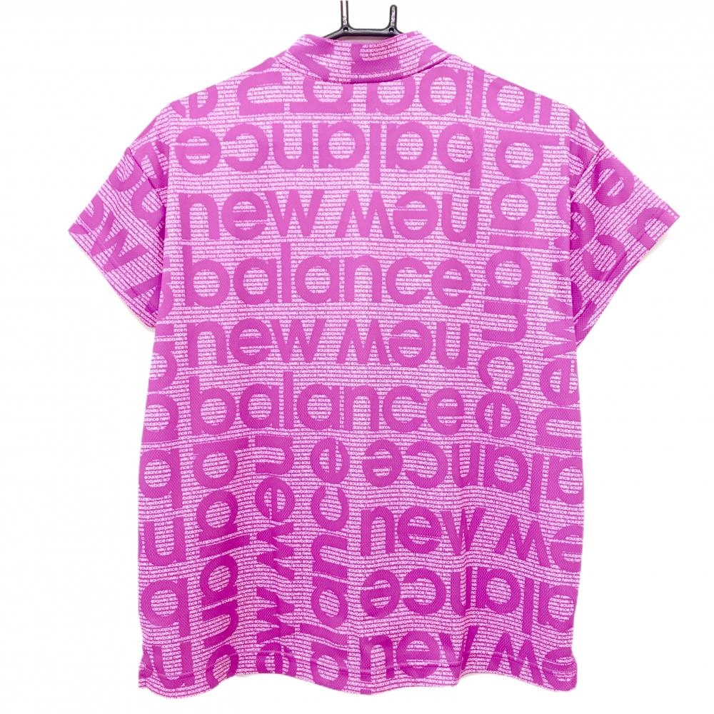 【超美品】ニューバランスゴルフ 半袖ハイネックシャツ ピンク系×白 英字ロゴ柄 レディース 2(L) ゴルフウェア 2024年モデル New Balance