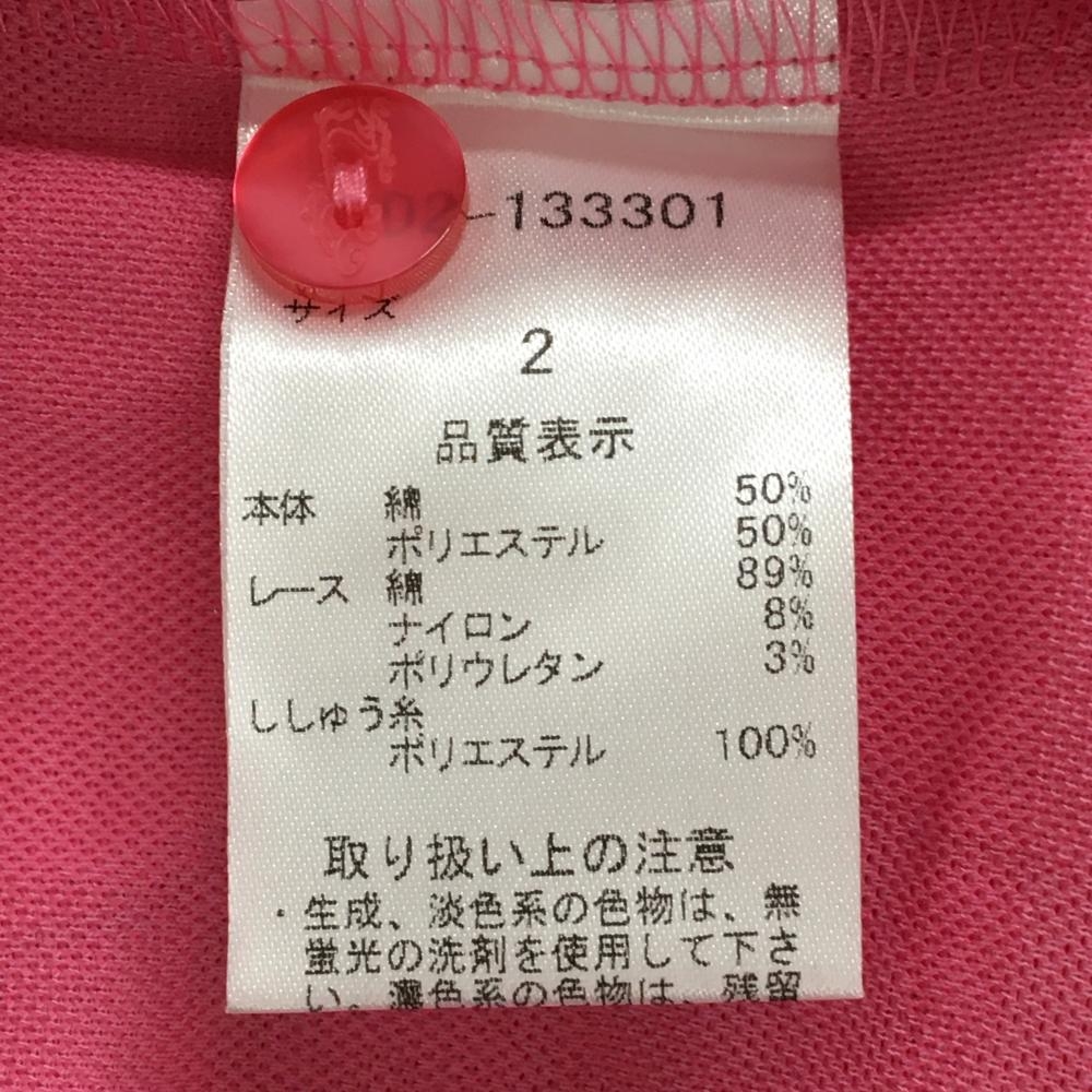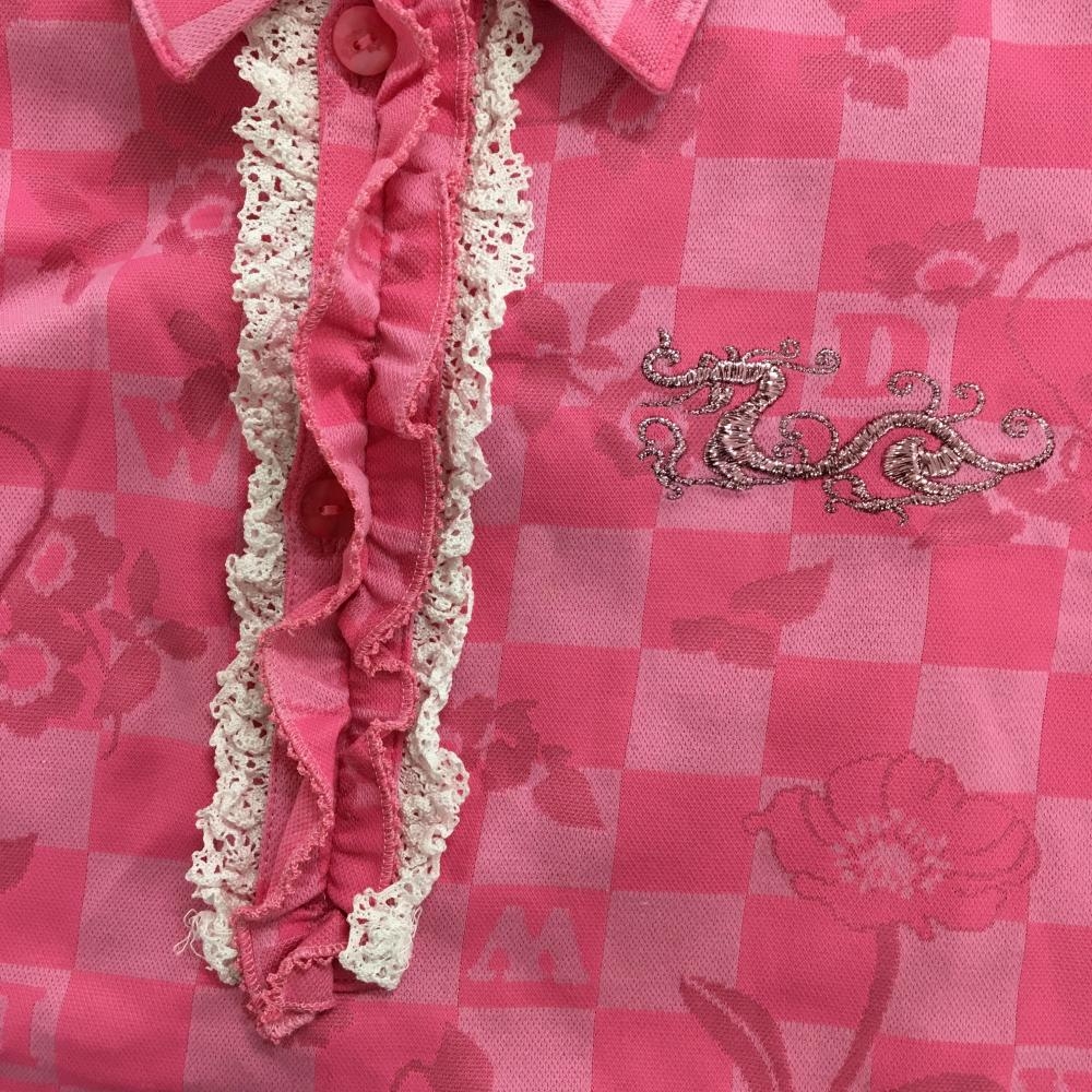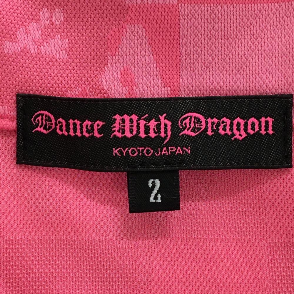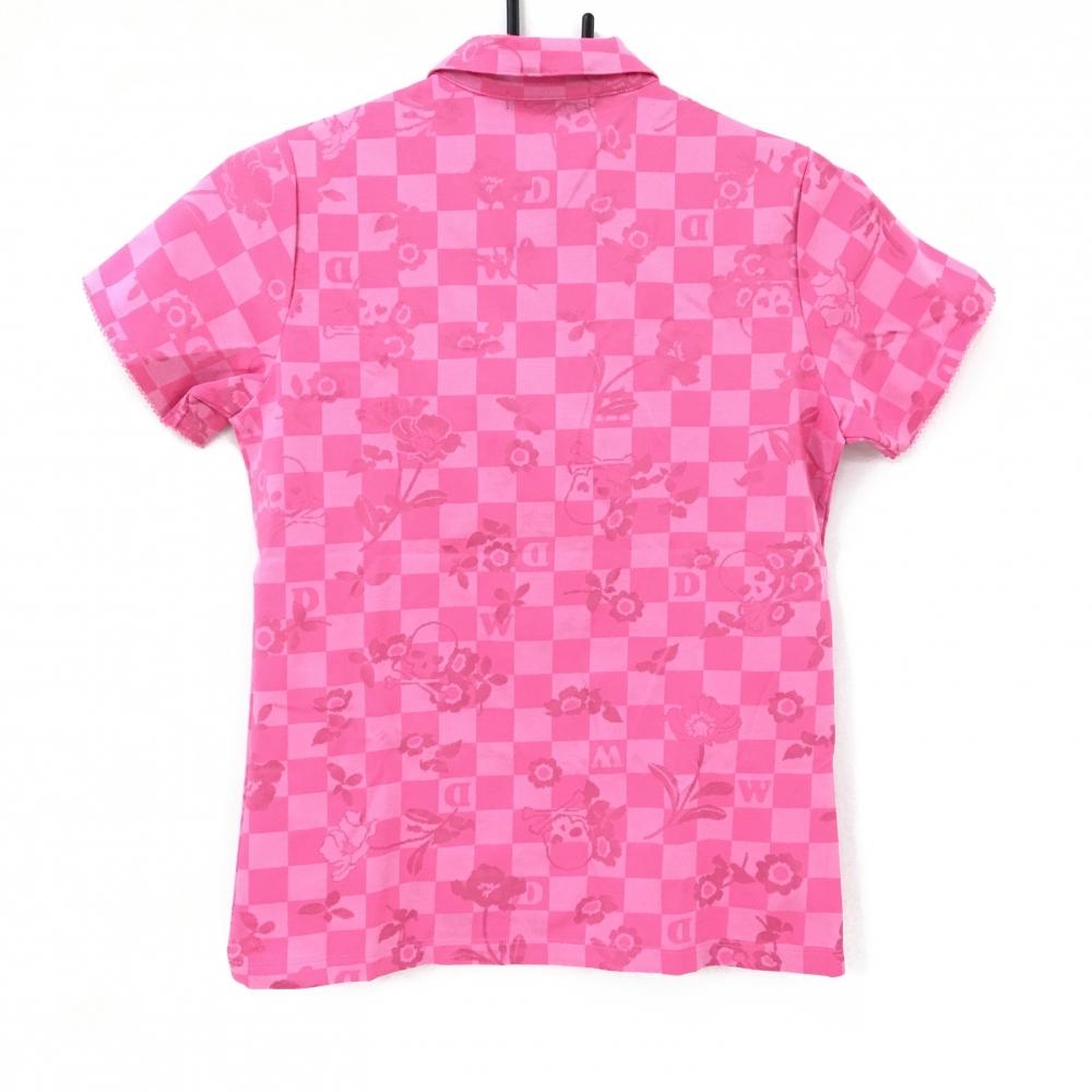 【美品】ダンスウィズドラゴン 半袖ポロシャツ ピンク系 総柄 スカル 花 チェック レディース 2(M) ゴルフウェア Dance With Dragon