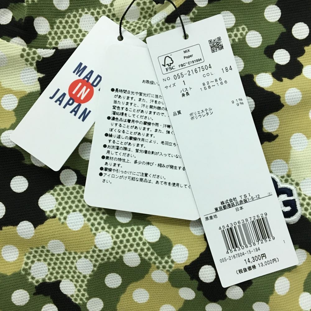 【新品】パーリーゲイツ ノースリーブポロシャツ カーキ×ベージュ×白 迷彩柄 カモフラ レディース 1(M) ゴルフウェア PEARLY GATES