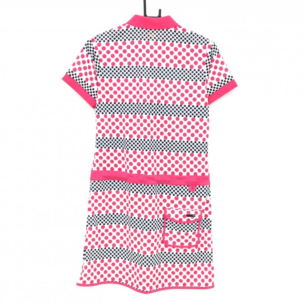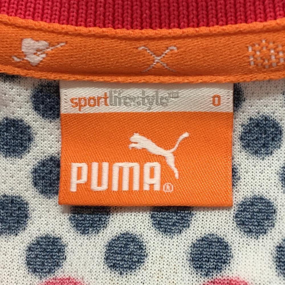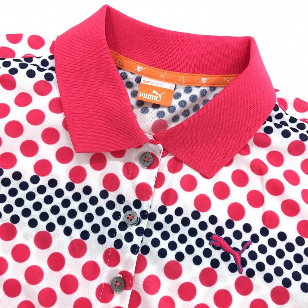 【超美品】プーマ 半袖ポロワンピース 白×ピンク ドット総柄 ロゴ刺しゅう ウエスト調節紐 レディース O ゴルフウェア PUMA