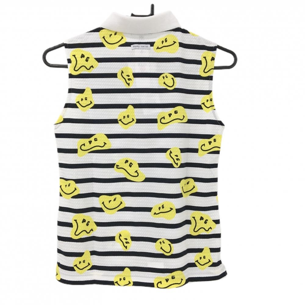 【新品】パーリーゲイツ ノースリーブポロシャツ 白×ネイビー TOKENIKO ボーダー 織生地 レディース 0(S) ゴルフウェア PEARLY GATES
