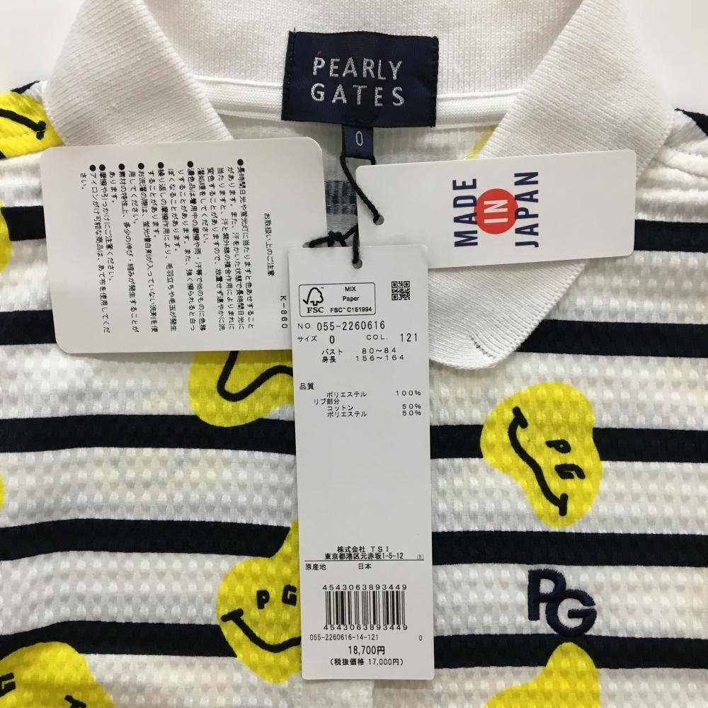 【新品】パーリーゲイツ ノースリーブポロシャツ 白×ネイビー TOKENIKO ボーダー 織生地 レディース 0(S) ゴルフウェア PEARLY GATES